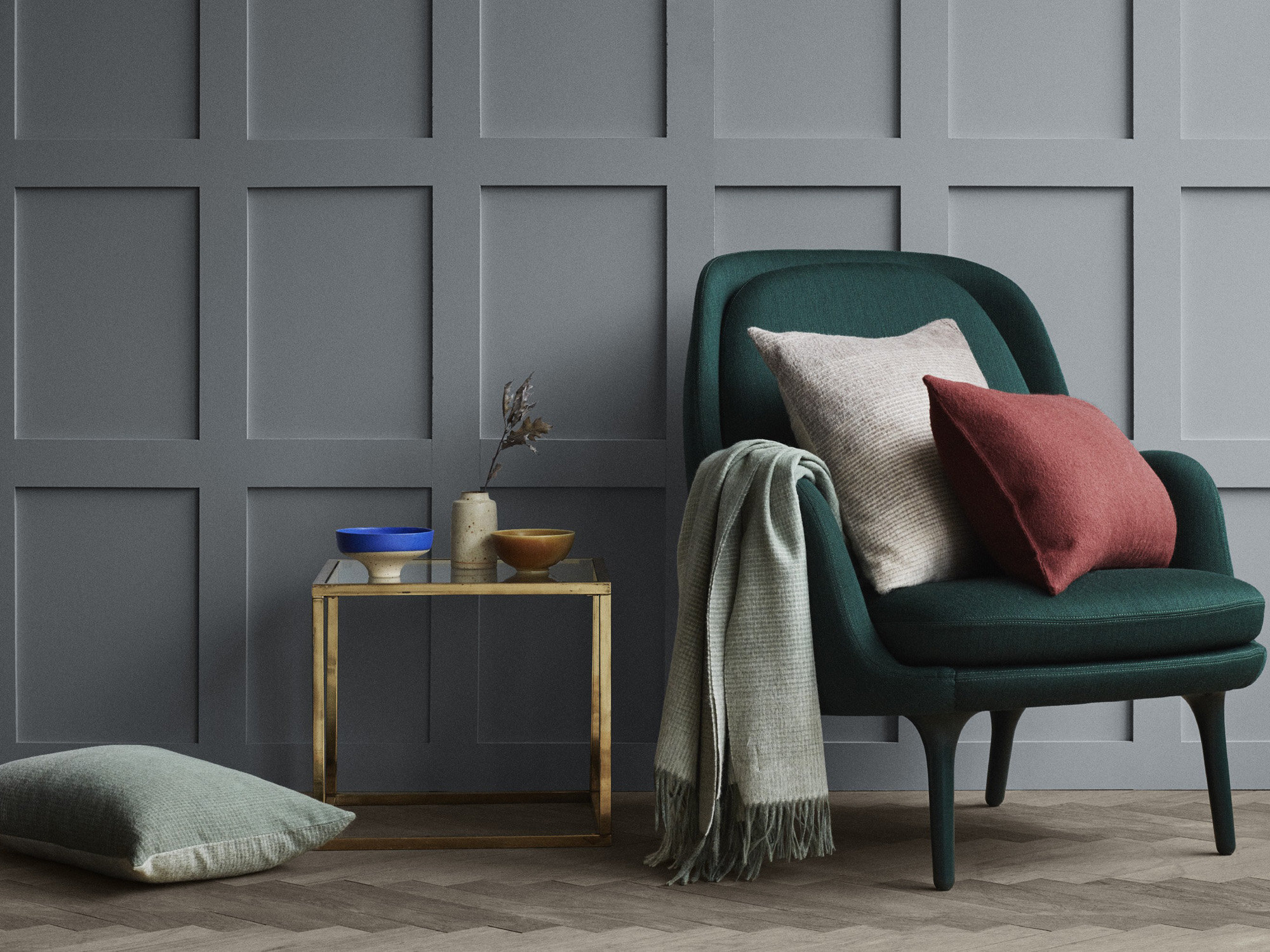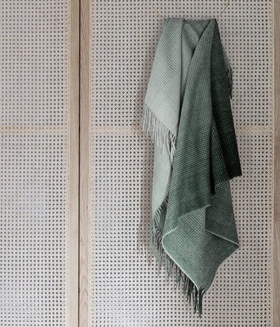 Тонкая сетка приводит к захватывающему цветовому градиенту от темных до светлых тонов. Диаметр волокна от 26 до 28 микрон делает этот плед приятно мягким и теплым. Бахрома на конце пледа придает игривый оттенок современному датскому дизайну. Плед не только самодостаточен и идеального размера, но также может сочетаться с соответствующей подушкой.