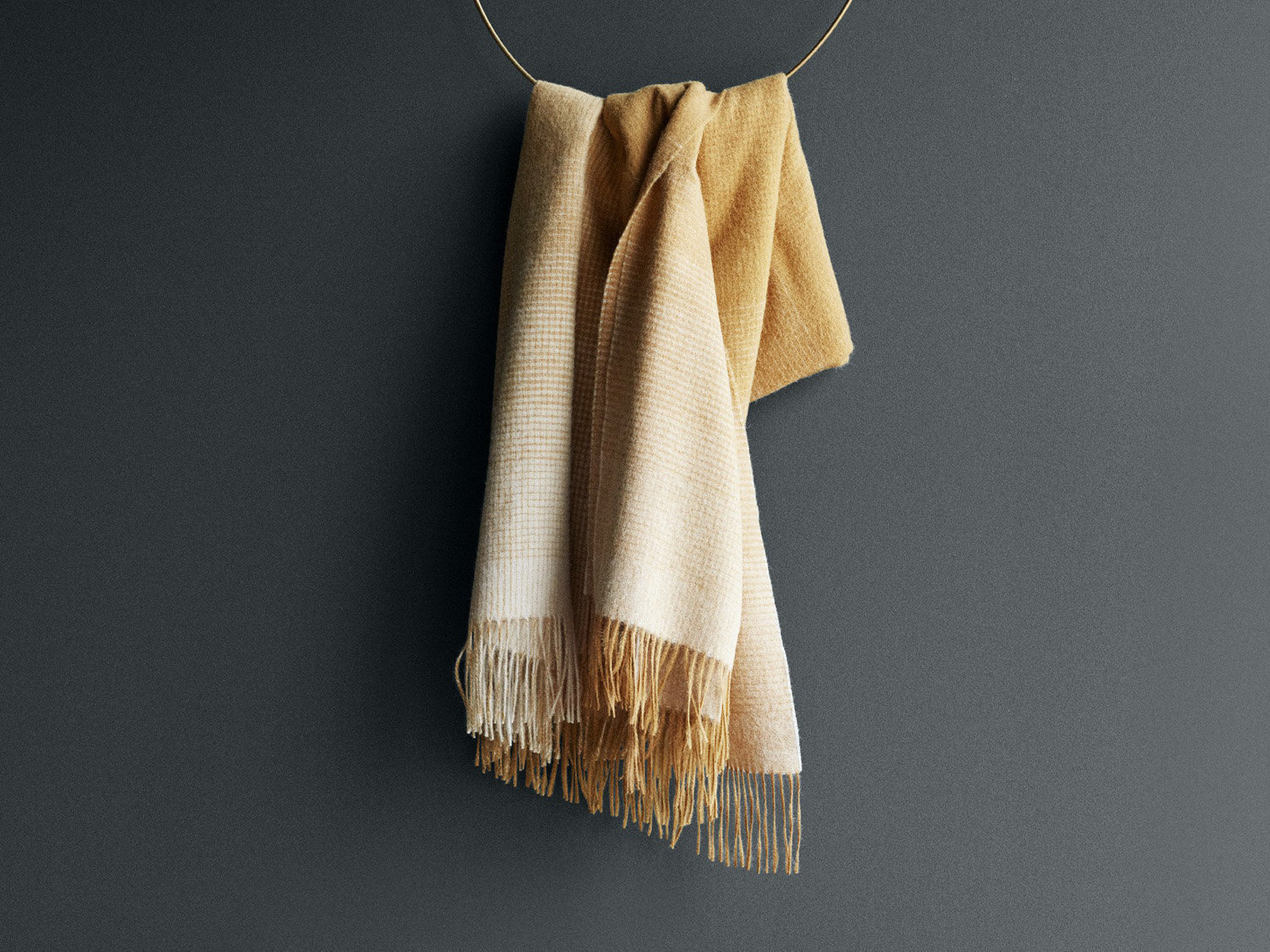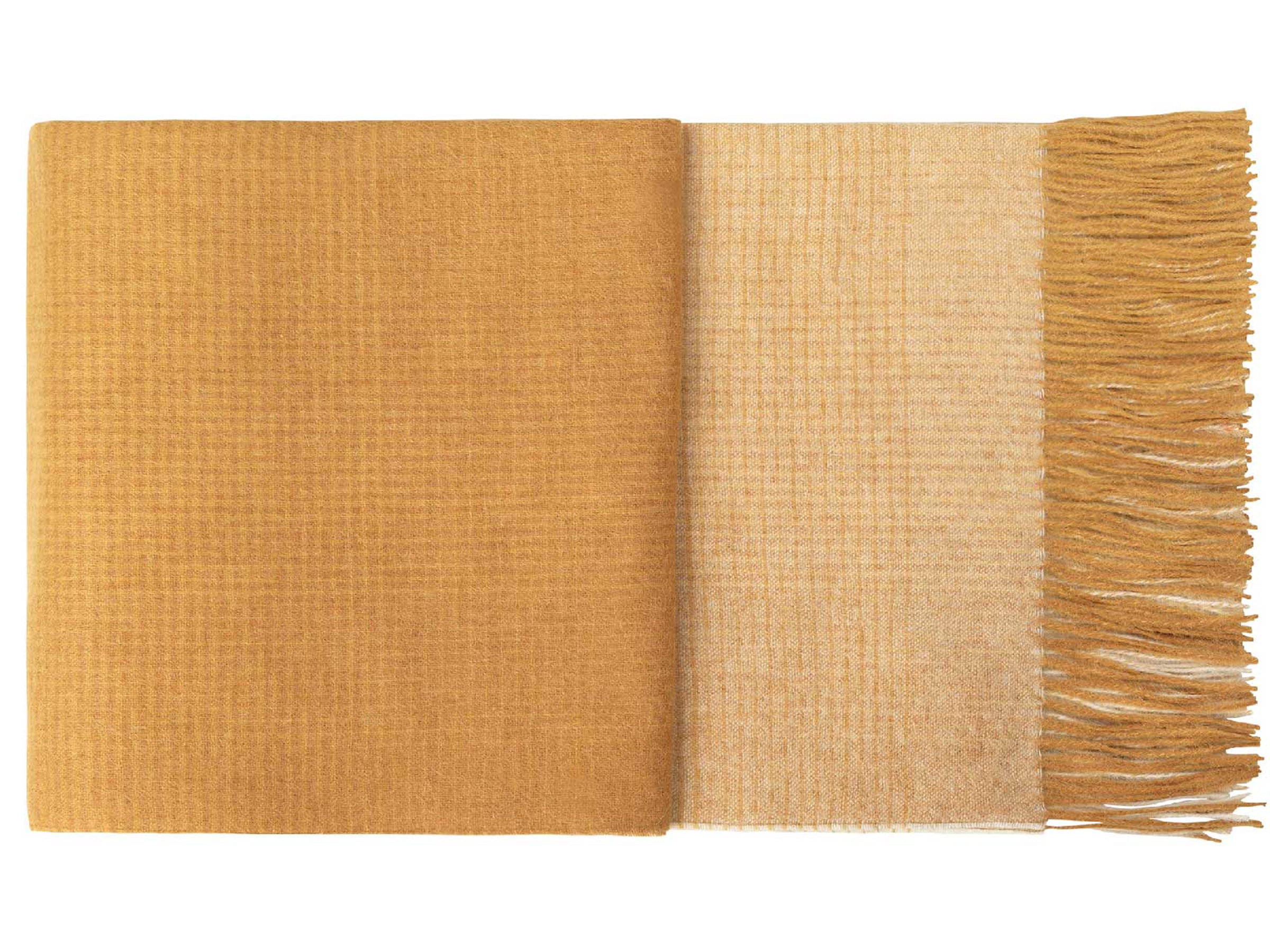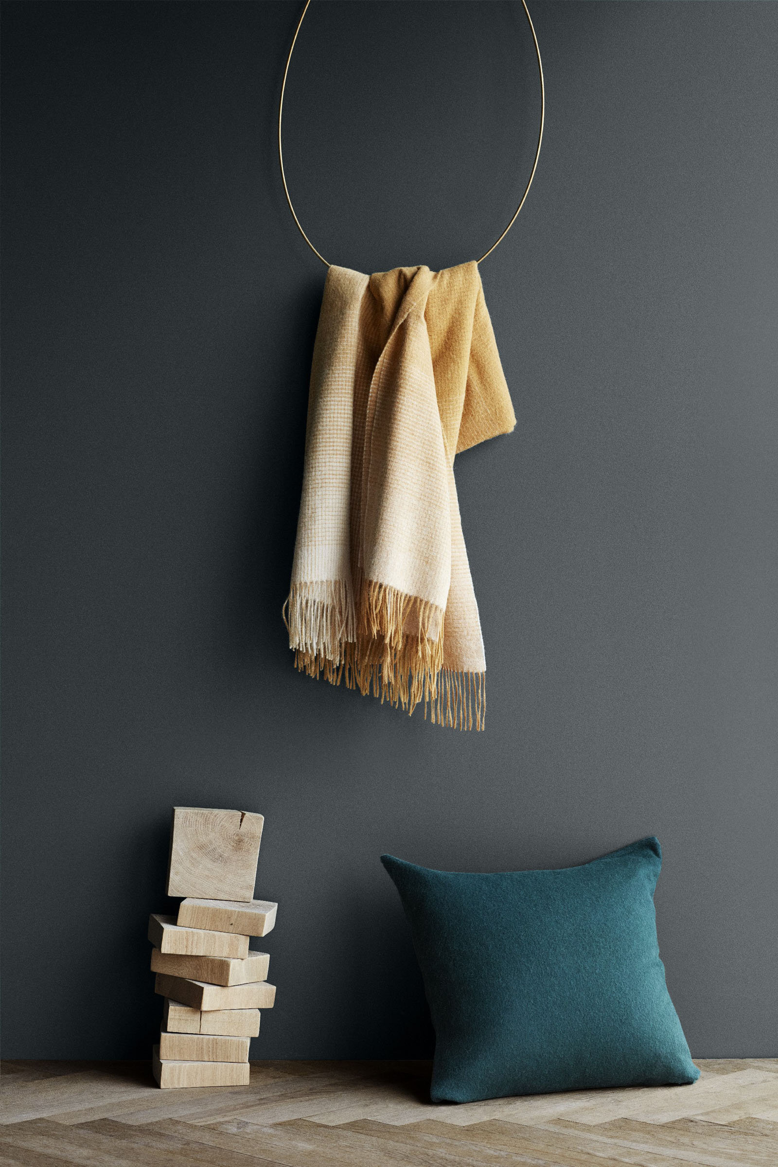 Тонкая сетка приводит к захватывающему цветовому градиенту от темных до светлых тонов. Диаметр волокна от 26 до 28 микрон делает этот плед приятно мягким и теплым. Бахрома на конце пледа придает игривый оттенок современному датскому дизайну. Плед не только самодостаточен и идеального размера, но также может сочетаться с соответствующей подушкой.