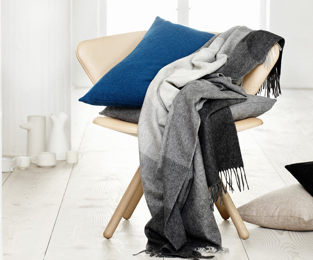 Диаметр волокна от 26 до 28 микрон делает этот плед приятно мягким и теплым. Бахрома на конце пледа придает игривый оттенок современному датскому дизайну. Плед не только самодостаточен и идеального размера, но также может сочетаться с соответствующей подушкой.