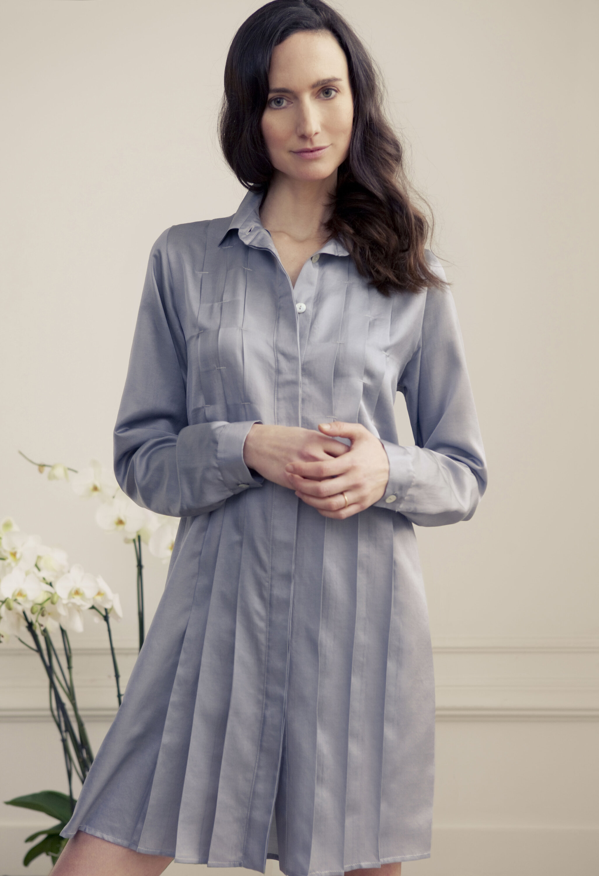 Элегантное платье-сорочка с рукавами и декоративным плесе  для придания женственности и роскоши при всей легкости