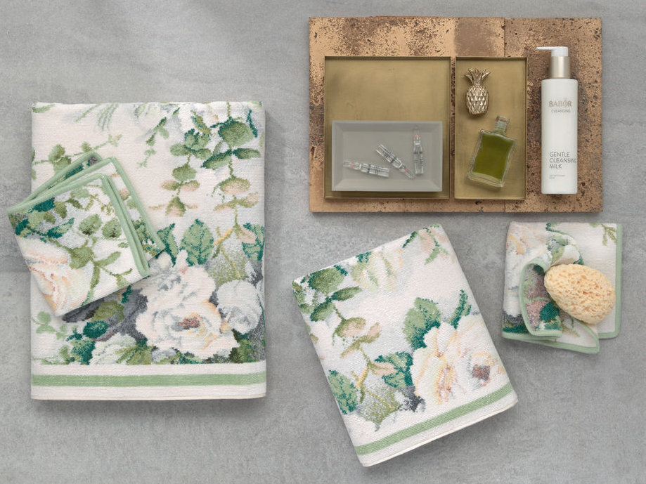 - Коллекция состоит из полотенец, тюрбана, декоративной наволочки 45/45 см, покрывала / пледа 150х250 см
