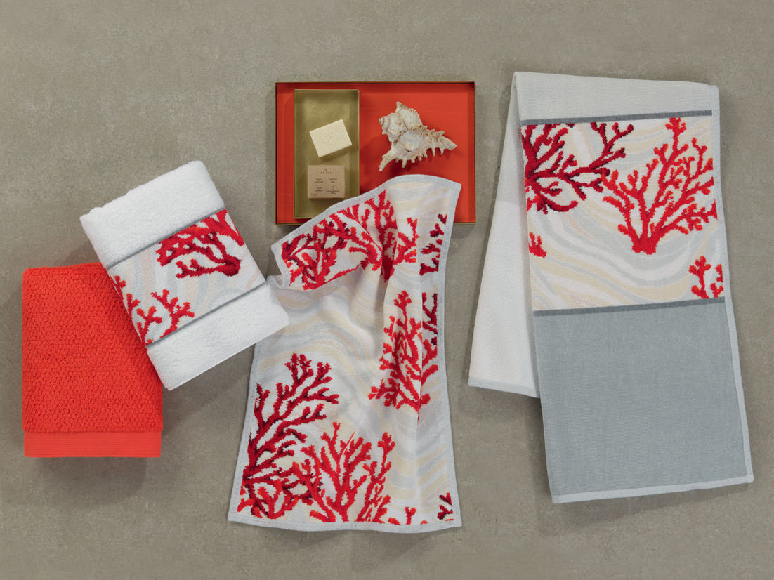 Филигранные кораллы - отличный, сильный цветовой акцент на благородных серых тонах. Сильный цвет можно найти в нашей серии для полотенец IBIZA.