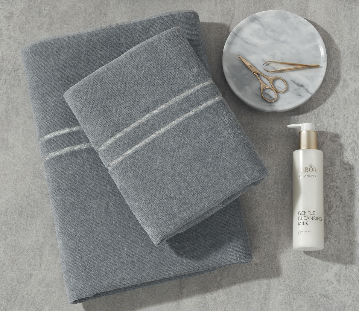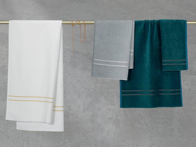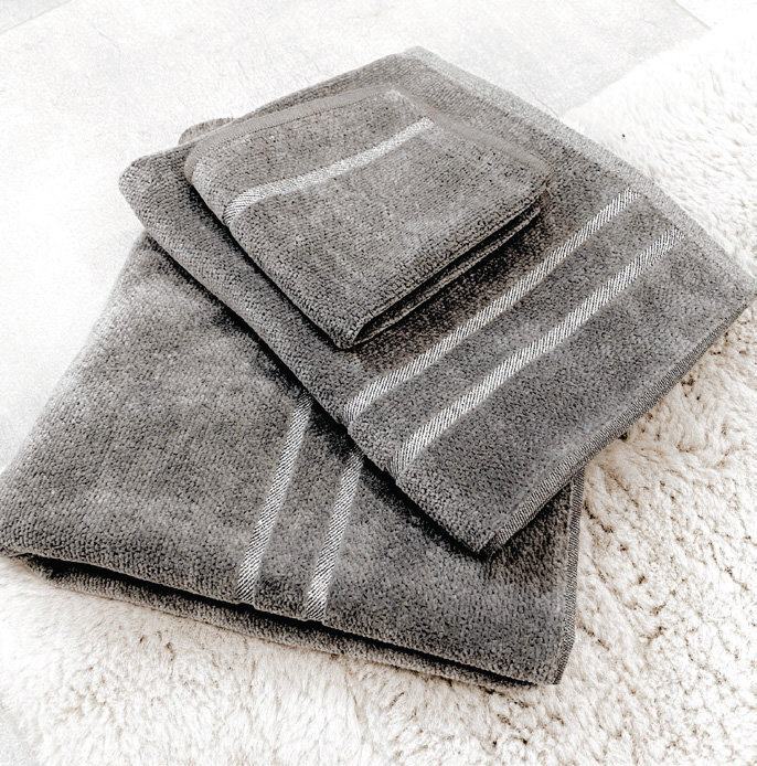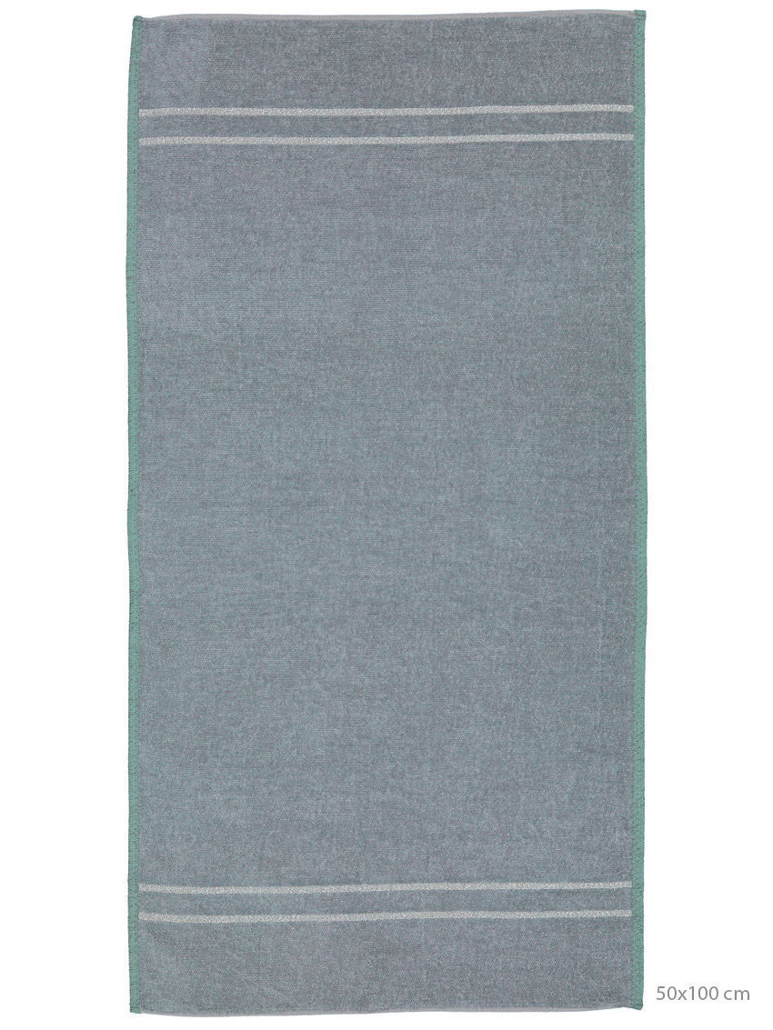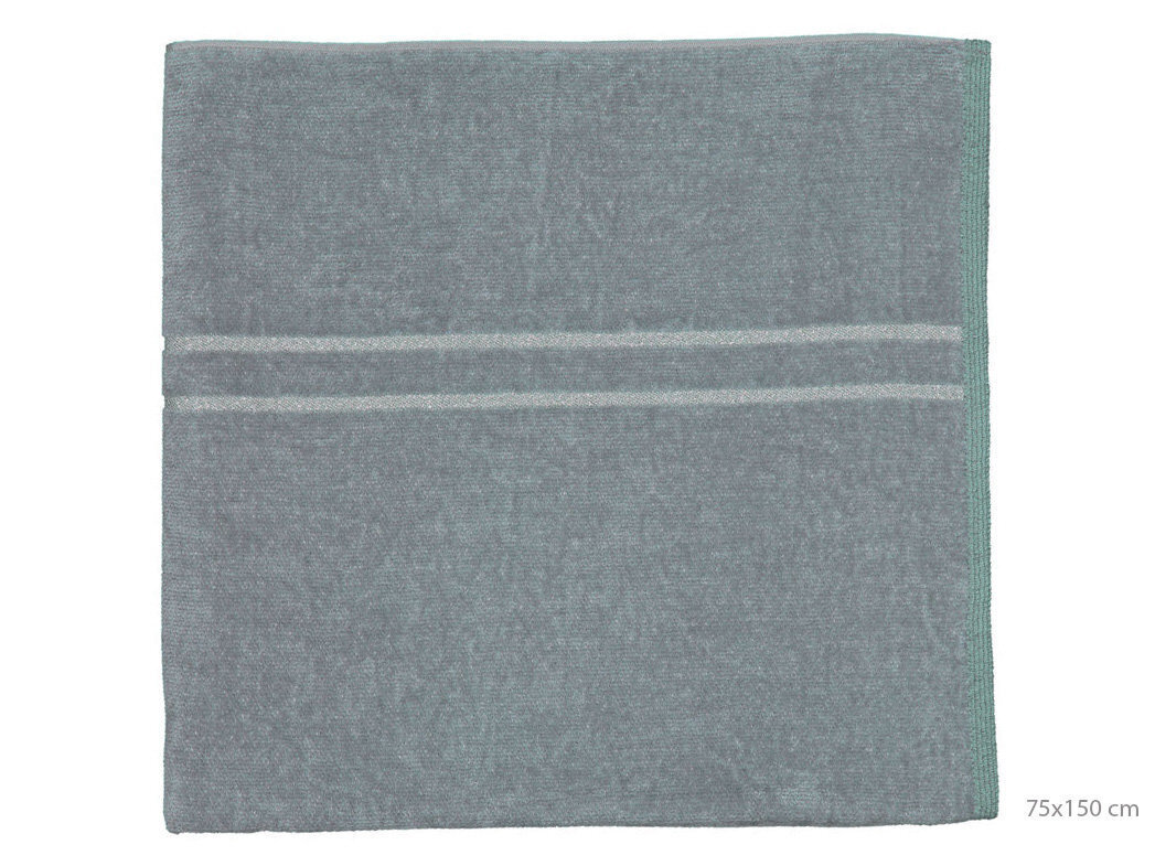 - Стальной серый фон полотенца с узкими серебристыми полосками
