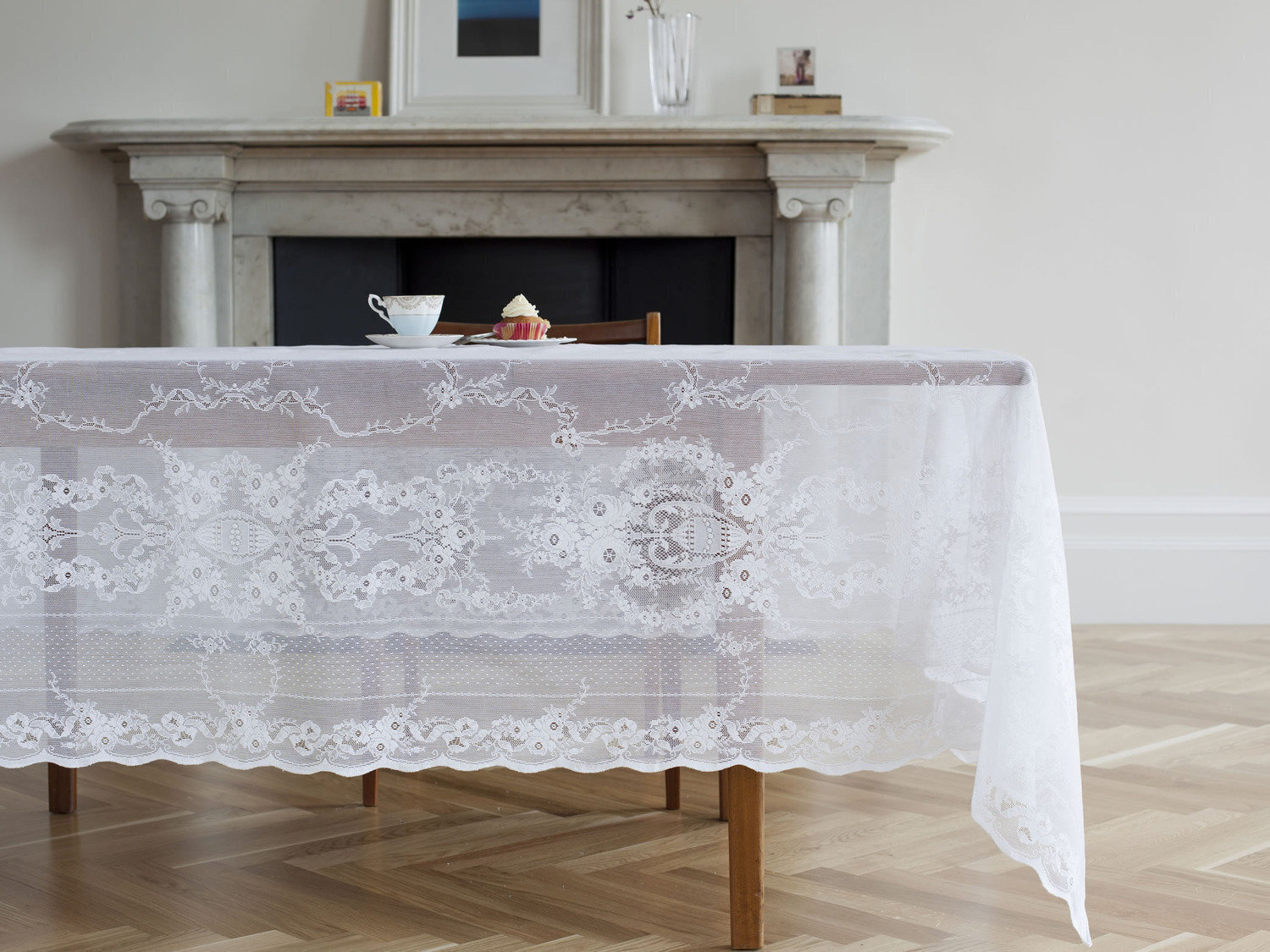 Потрясающе красивая скатерть из настоящего ноттингемского кружева английской марки MYB Textiles. Кружевные полотна и тюли MYB Textiles ценятся во всем мире за свое высочайшее качество и мастерство. Такая скатерть станет настоящим украшением и привнесет элемент благородства вашему интерьеру.