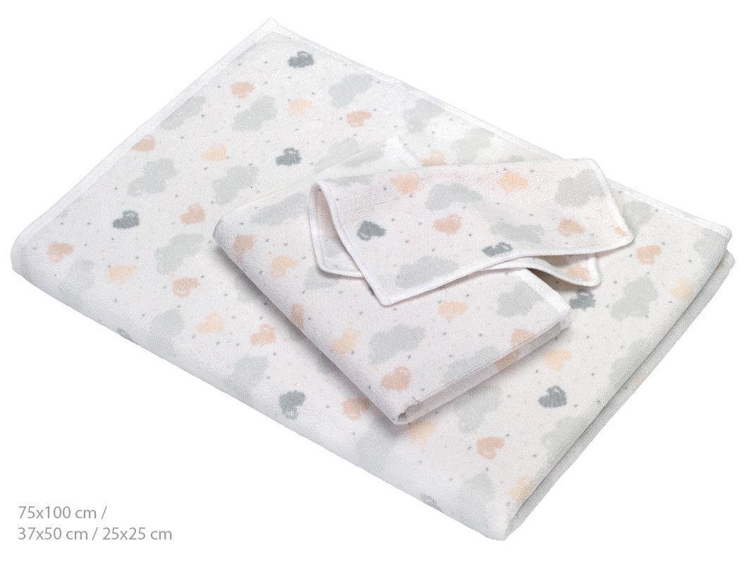 • Коллекция состоит из полотенец, нагрудника, одеяла / пледа 75х100 см
