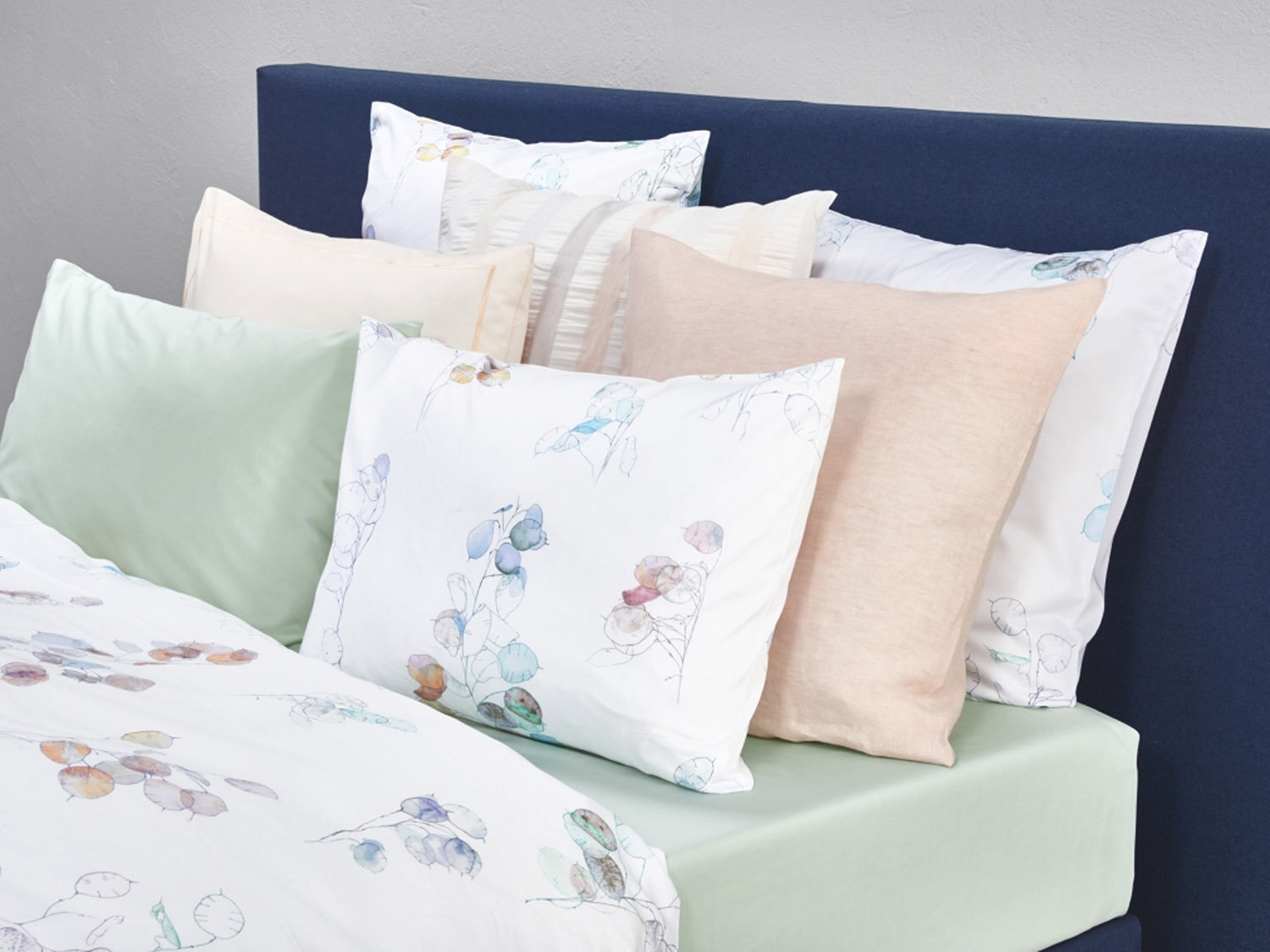 Таинственное растение или лунная полевка на постельном белье Кристиана Фишбахера "Lunaria" лучше всего растут в самых глубоких оттенках. Осенью, когда семенные коробочки лунного флакона разрываются, разделительные средние стенки остаются в виде прозрачных глянцевых серебряных дисков. Они сияют далеко и широко до весны и создают захватывающие игры света. Очаровательное теневое растение с его зимним декором изображено на постельном белье Кристиана Фишбахера "Lunaria". В сказочных ледяных и пудровых оттенках дизайн играет со степенями прозрачности и отражения света. Тонкий зимний дизайн доступен в двух разных цветах основного фона: светло-серый  (003) и белый (209).
