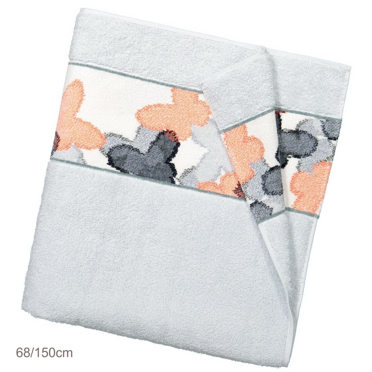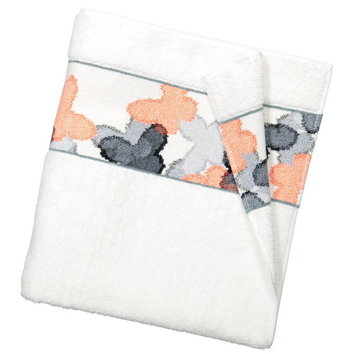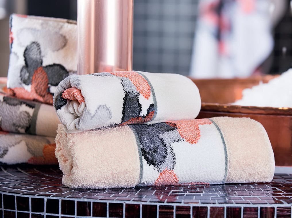 • Дизайн в трех тонах махровой ткани: 504 (белый), 516 (папайя), 518 (светло-серый)