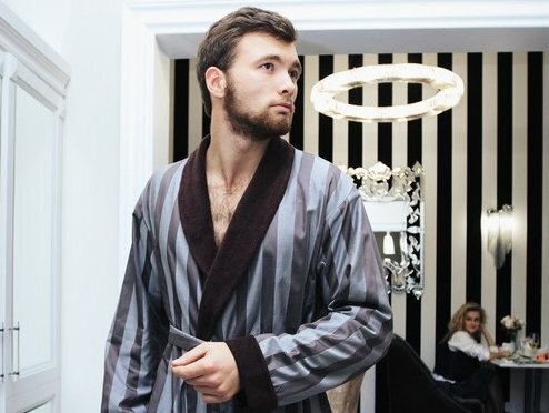 РОСКОШНЫЙ халат в сочетание элегантной жаккардовой ткани Christian Fischbacher с элегантным узором и лучшей махровой ткани