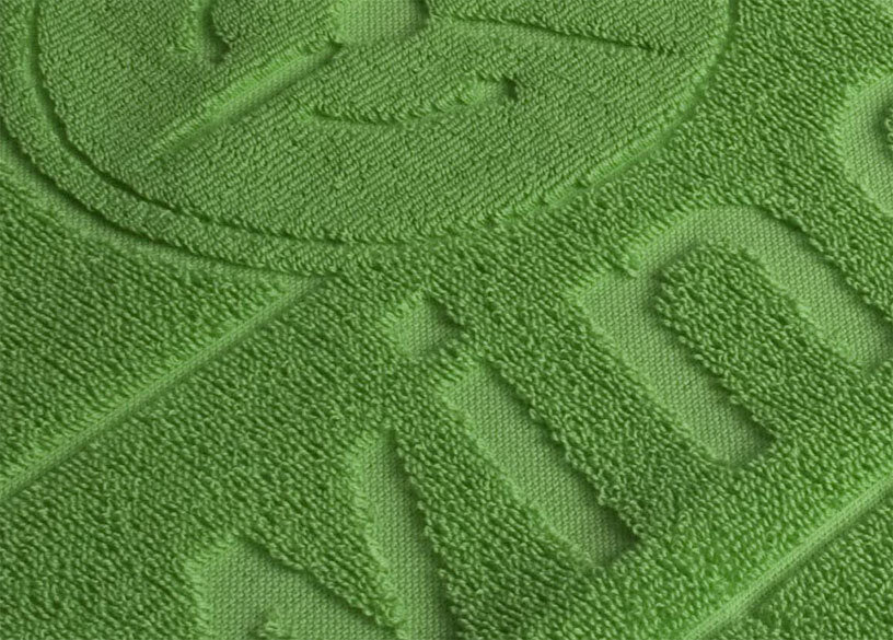 С велюр - полотенца отрезают петли с одной стороны (стриженый). Это создает мягкость, слегка глянцевую поверхность. Изнаночная сторона состоит из петель. Каждого логотип на велюровом полотенце может быть напечатан в любом цвете. При плотности всего 350g/m2 велюровое полотенце очень легкое и подходит для пляжа. Сами полотенца сделаны нашим партнером в Португалии, и также имеют сертификат Oeko-Tex Standard 100