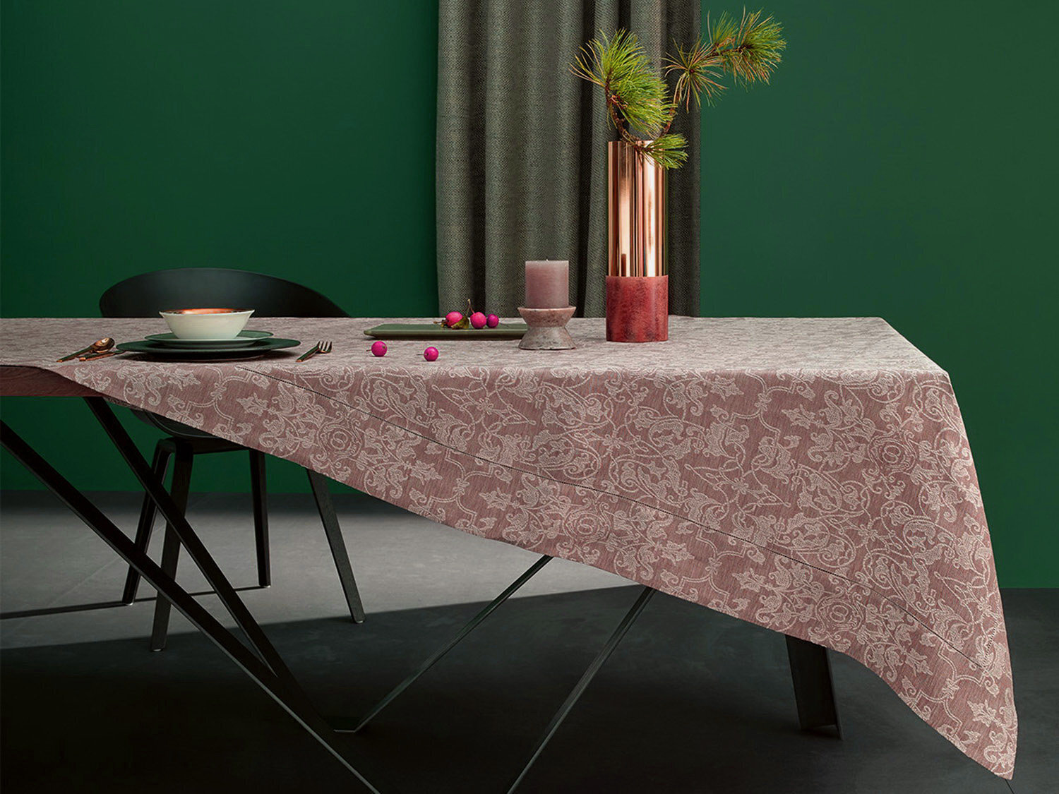 Жаккардовые скатерти «MARIAGE» напоминают своим дизайном о самом значимом для текстильного искусства периода – эпохе Возрождения. В этом рисунке переплетаются восточные арабески с формами «Нового мира», что выражает суть Ренессанса. Изделия с таким богатым рисунком станут настоящим украшением вашей столовой, кухни.