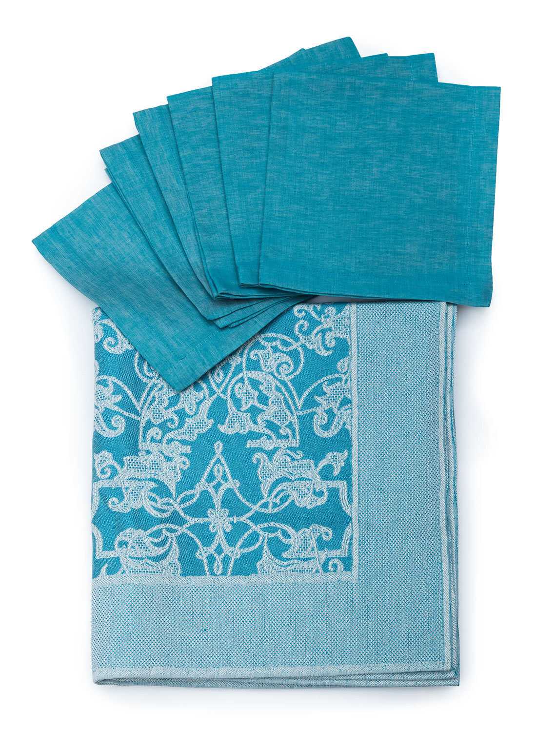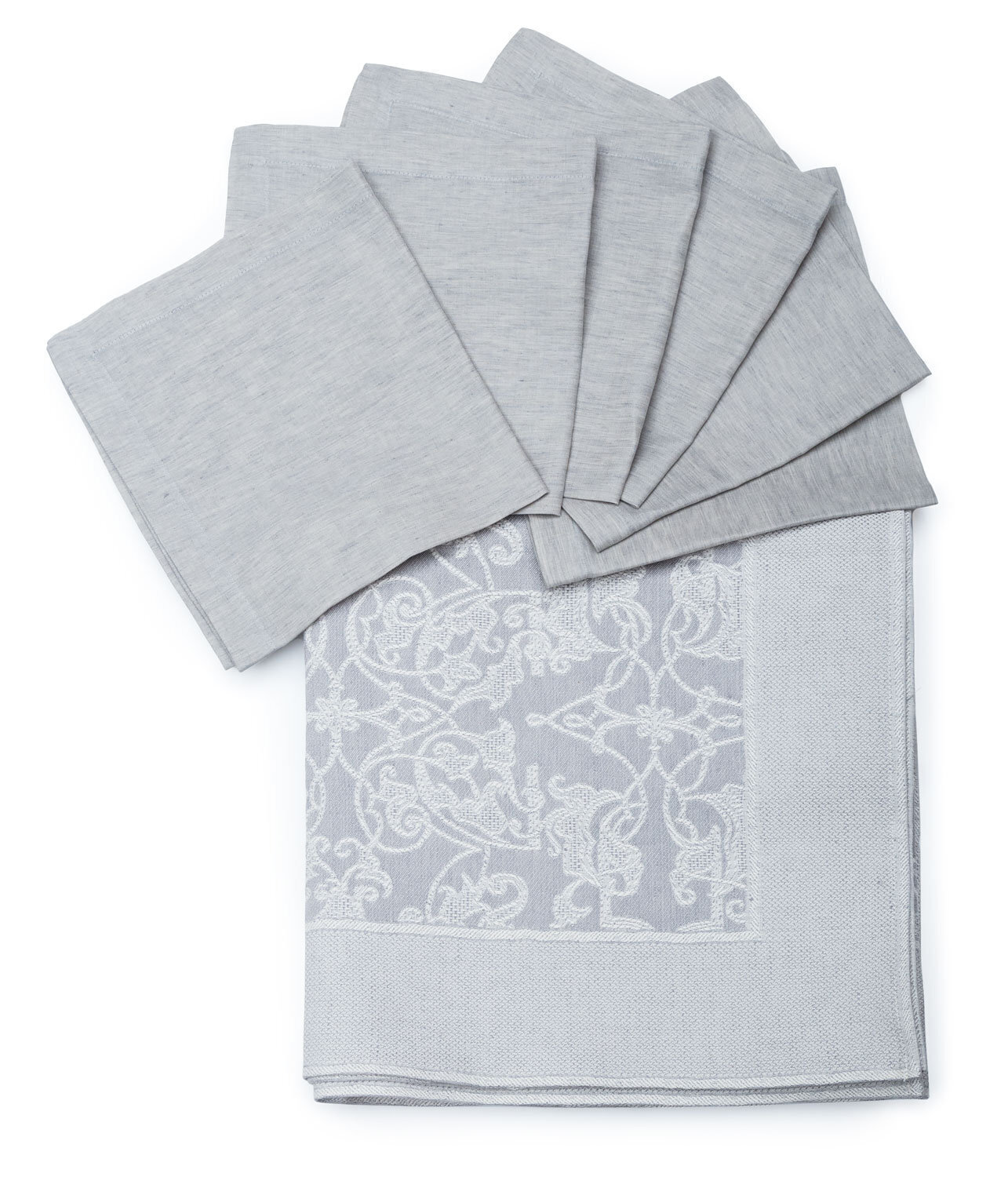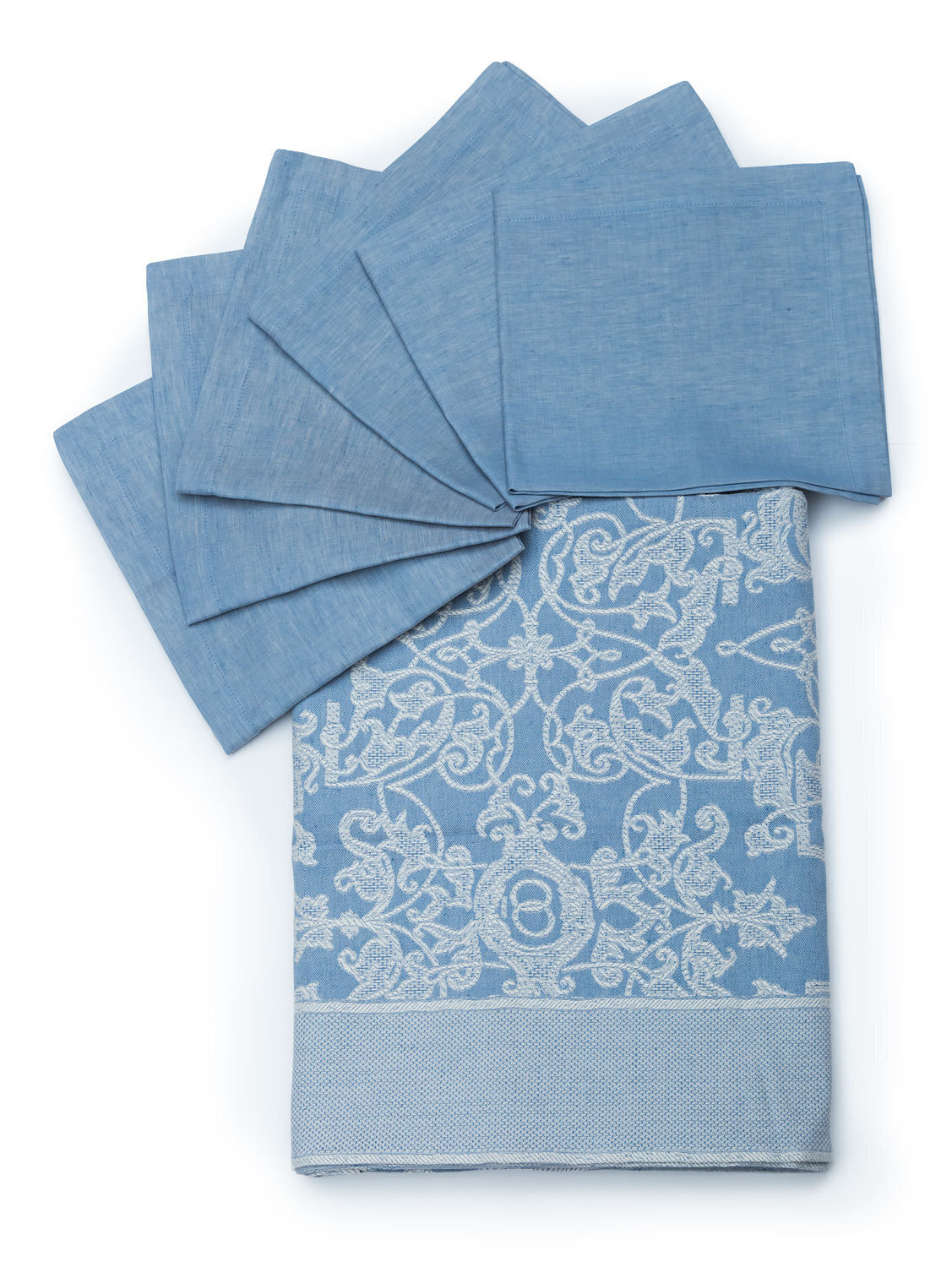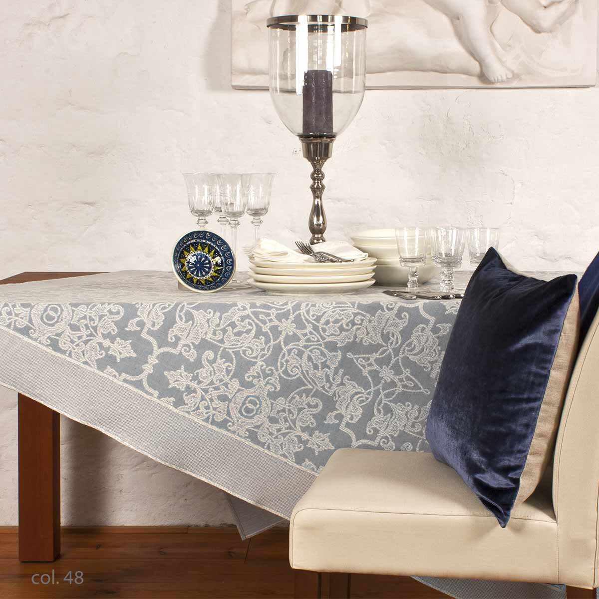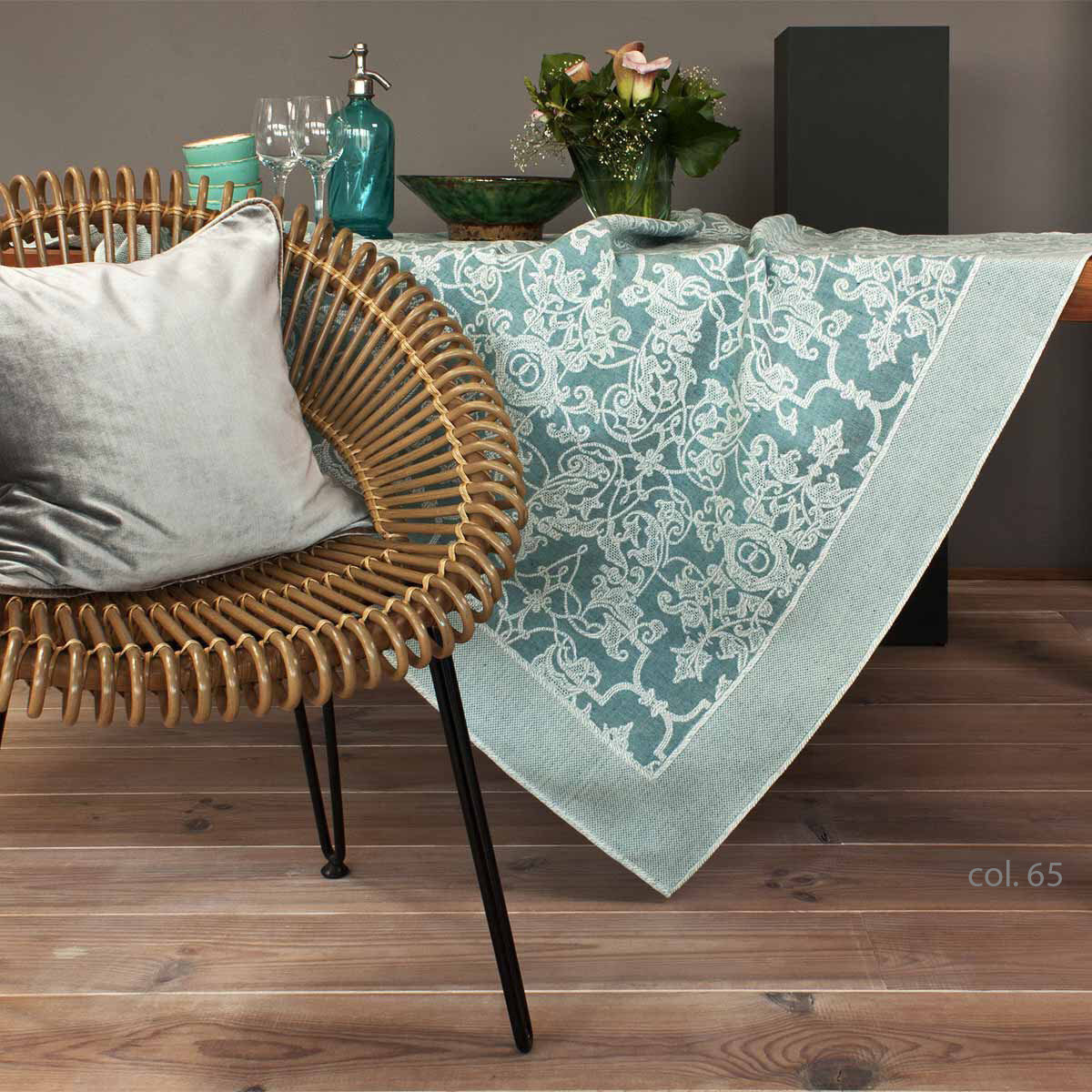 Жаккардовые скатерти «MARIAGE» напоминают своим дизайном о самом значимом для текстильного искусства периода – эпохе Возрождения. В этом рисунке переплетаются восточные арабески с формами «Нового мира», что выражает суть Ренессанса. Изделия с таким богатым рисунком станут настоящим украшением вашей столовой, кухни.