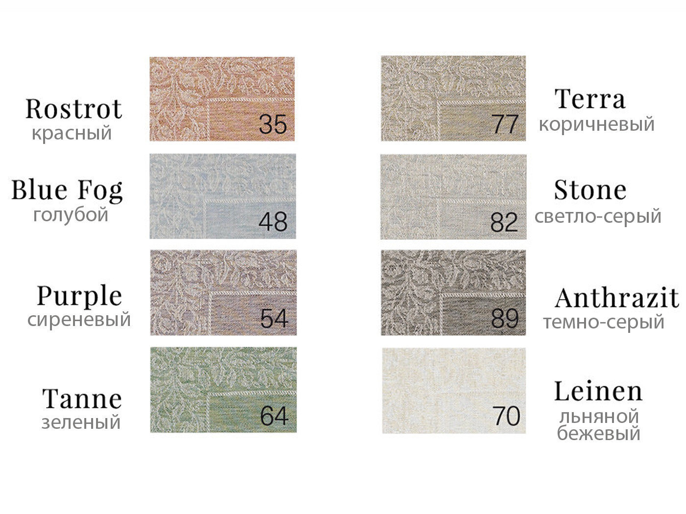 Цвет: 35 (красный), 48 (голубой), 54 (сиреневый), 64 (зеленый), 70 (натуральный лен, бежевый), 77 (коричневый), 82 (светло-серый), 89 (темно-серый, антрацит)