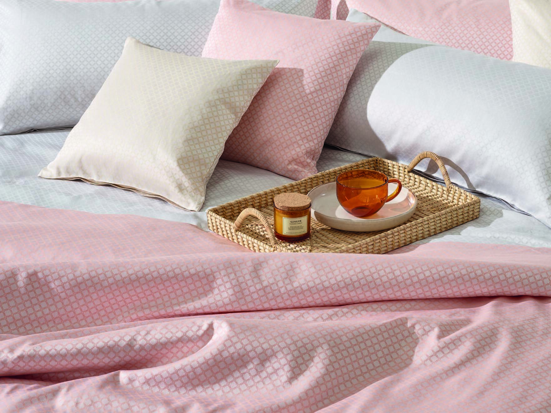 Постельное белье имеет тонкий сплошной узор, который можно сравнить с графическими цветами. Тонкая хлопчатобумажная пряжа сертифицирована GOTS