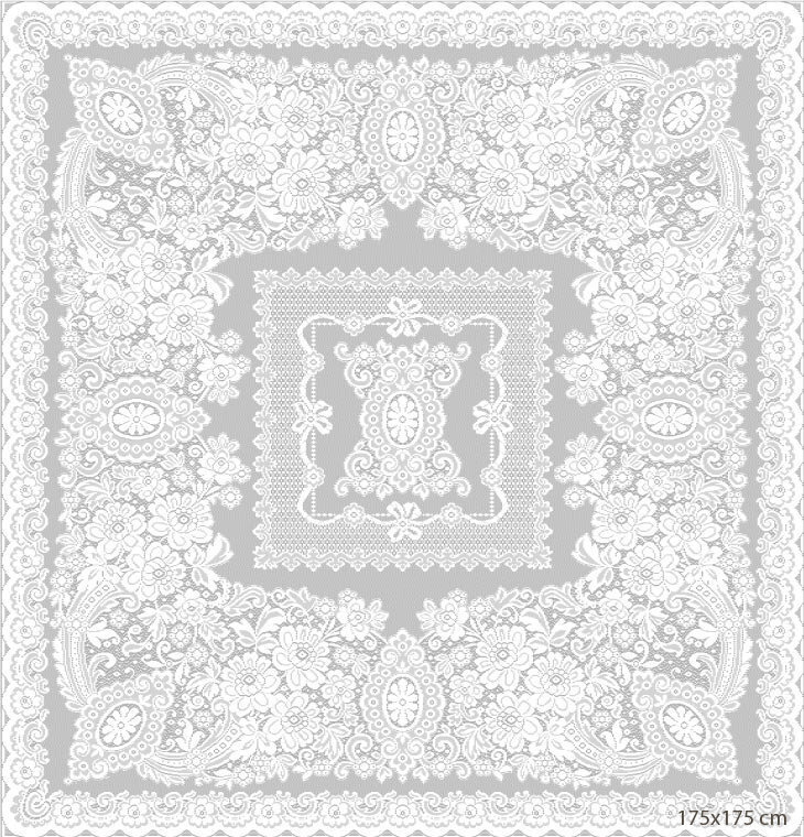 Потрясающе красивая скатерть из настоящего ноттингемского кружева MYB Textiles. Кружевные полотна и тюли MYB Textiles ценятся во всем мире за свое высочайшее качество и мастерство. Такая скатерть станет настоящим украшением любой гостиной или столовой.