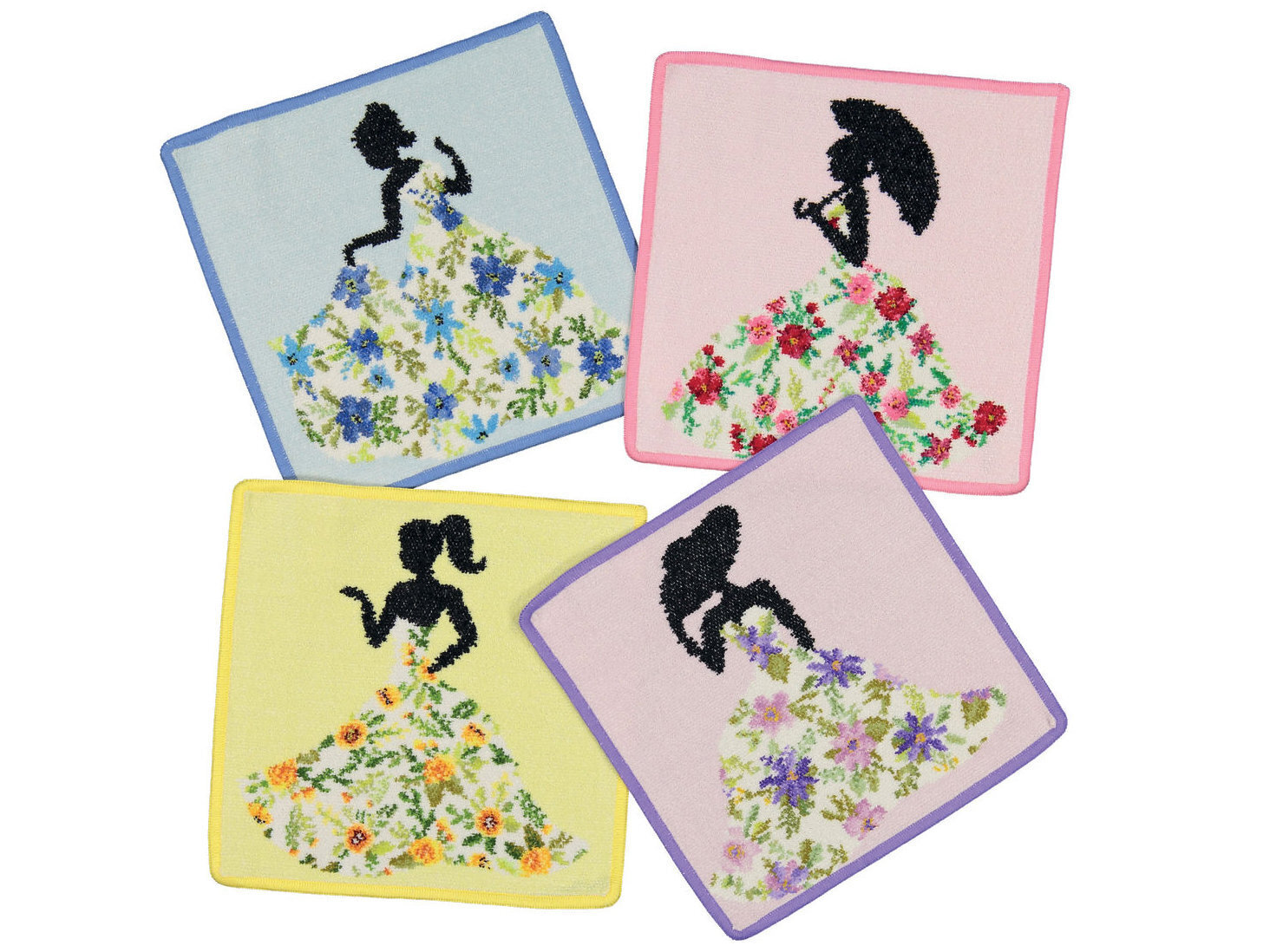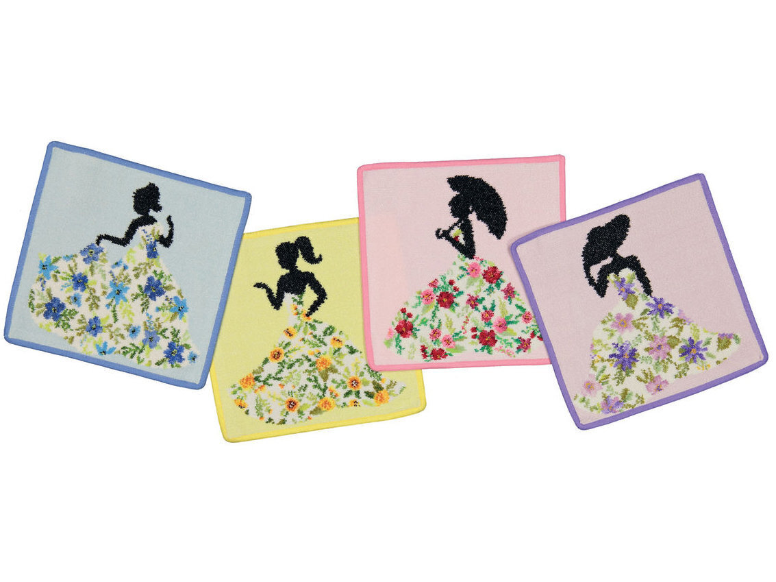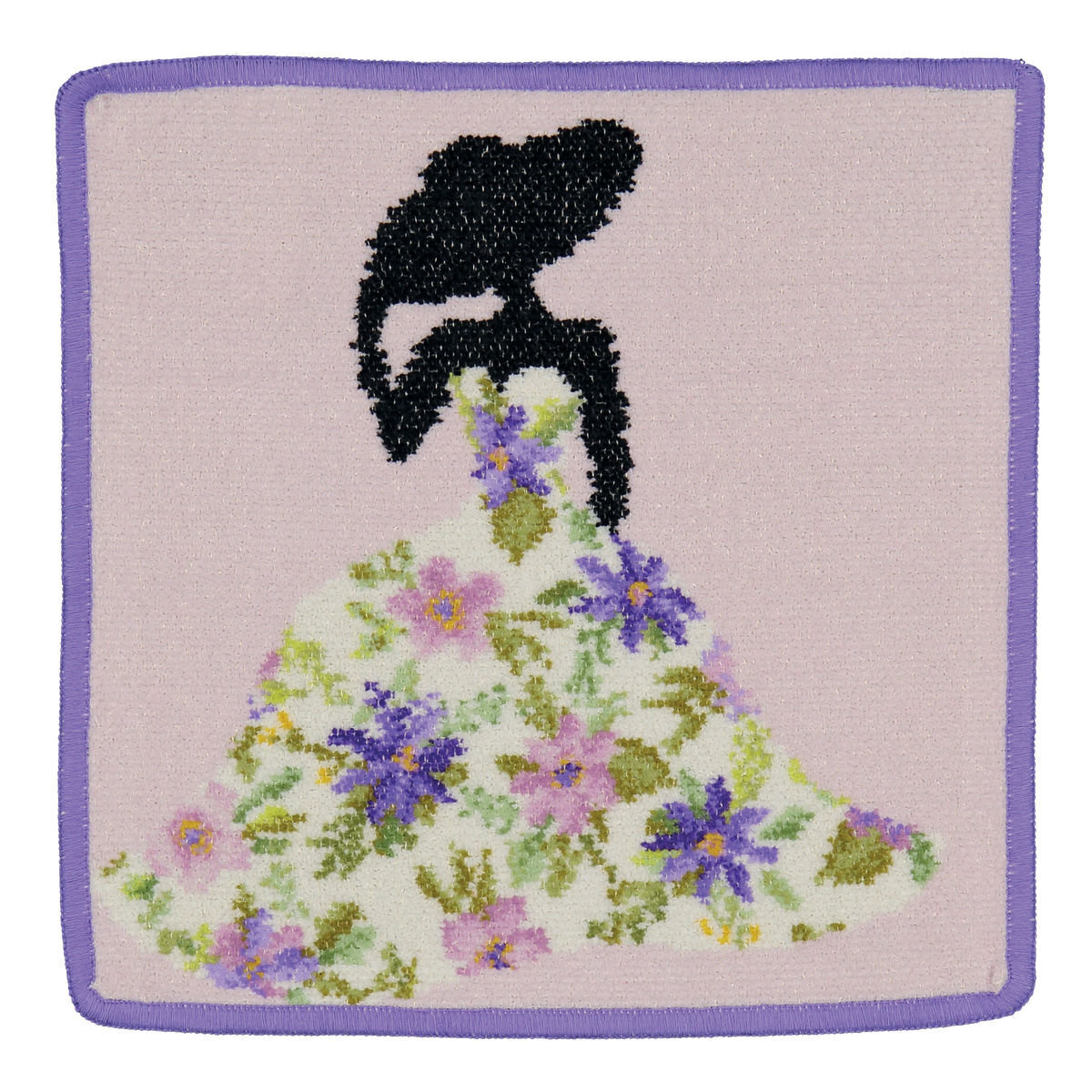 MISS FLOWER LILAC Feiler шенилловое полотенце (салфетка) 25x25cm. Дизайн: LILAC (лиловый фон), цвет канта: фиолетовый (052)