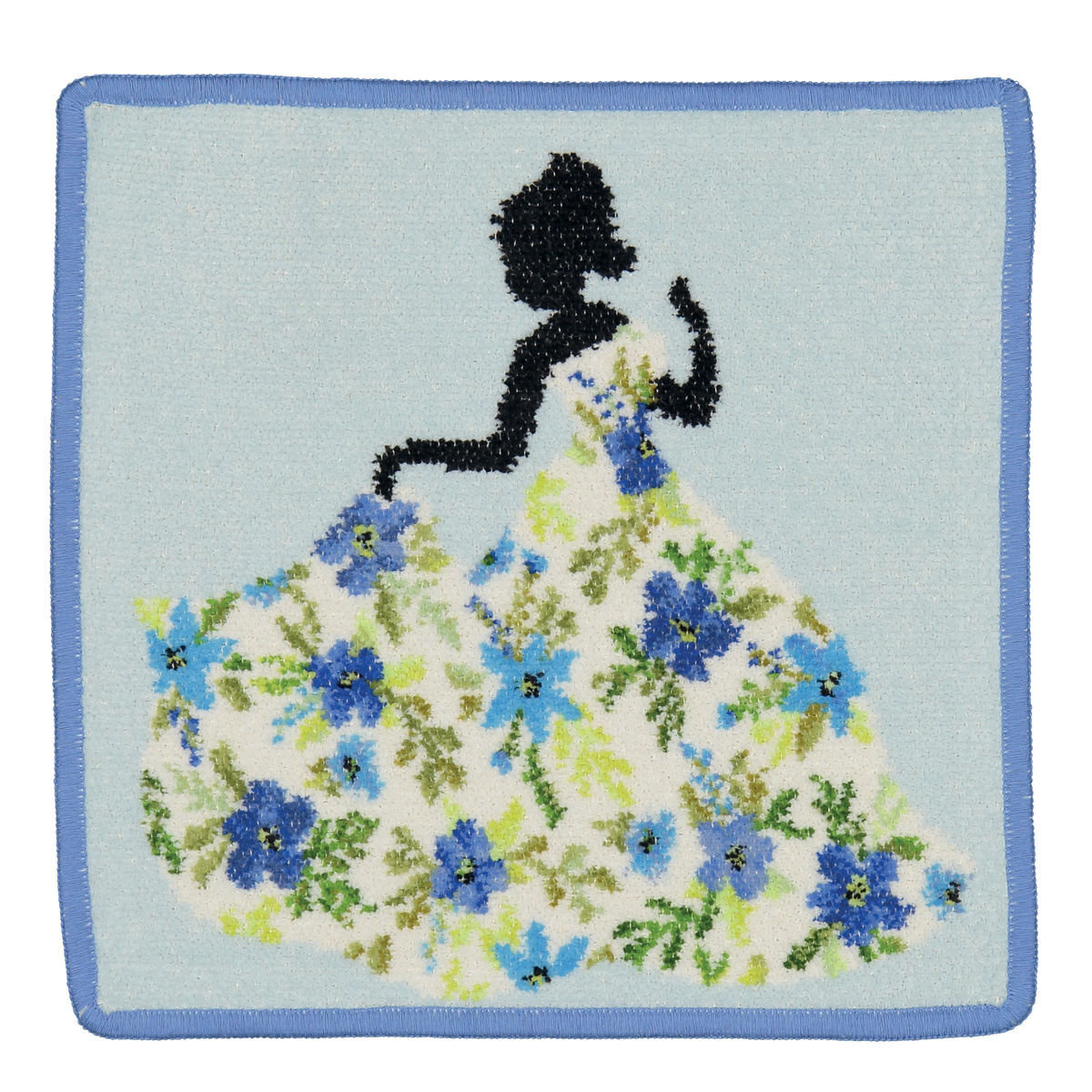 MISS FLOWER BLUE Feiler шенилловое полотенце (салфетка) 25x25cm. Дизайн: BLUE (голубой), цвет канта: синий (205)