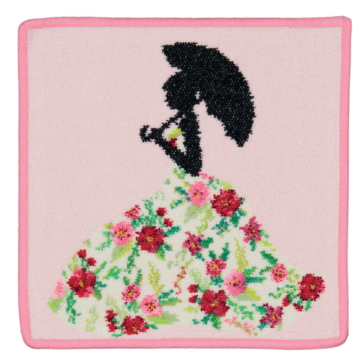 MISS FLOWER PINK Feiler шенилловое полотенце (салфетка) 25x25cm. Дизайн: PINK (розовый), цвет канта: малиновый (136)