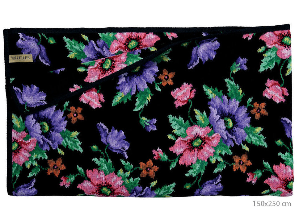 MOHN SCHWARZ (BLACK) Feiler покрывало 150x250cm. цвет канта: фиолетовый (52)