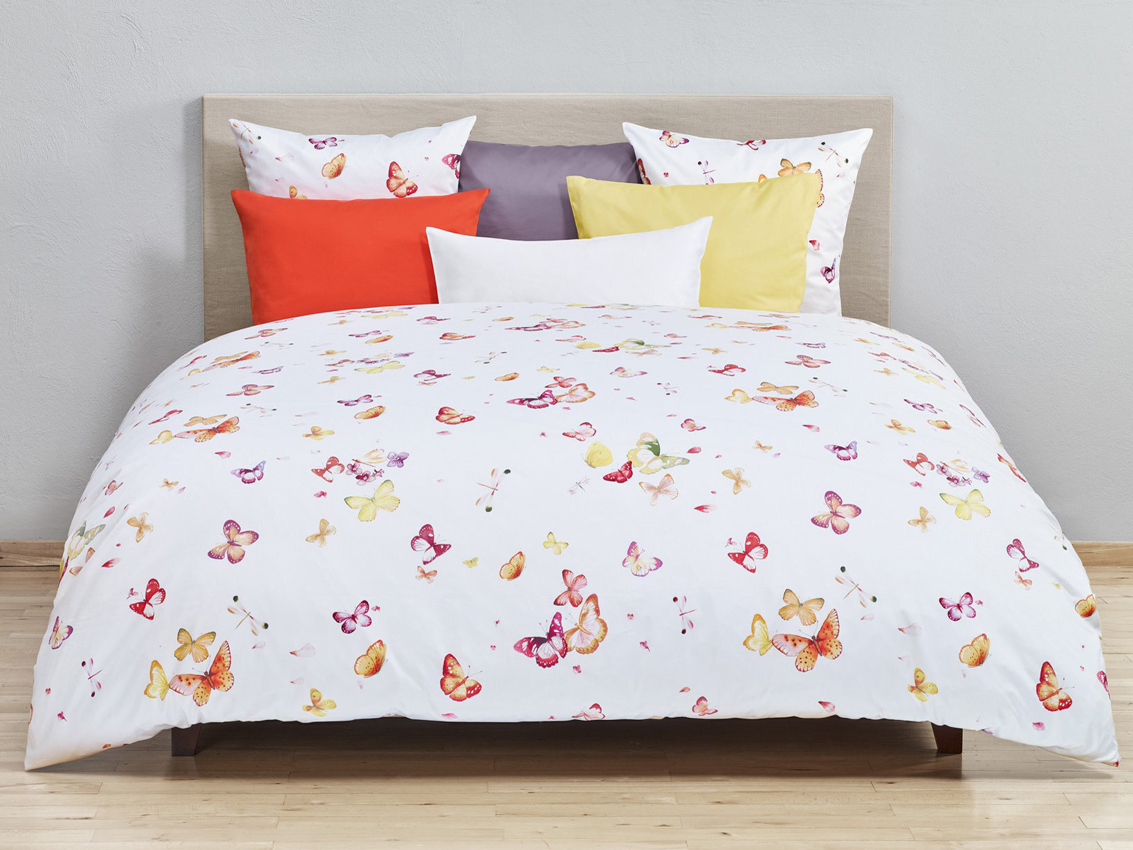 Бабочки, весело танцующие по дизайну постельного белья Mariposa, впервые ожили как акварельная живопись в собственной дизайнерской студии Christian Fischbacher в Швейцарии.
