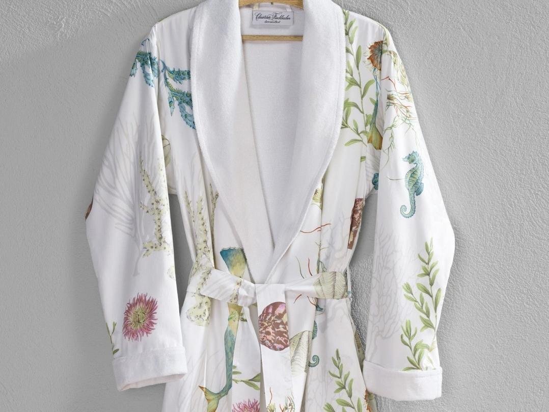РОСКОШНЫЙ халат в сочетание сатина Christian Fischbacher с элегантным узором и лучшей махровой ткани из объемной нити очень мягкая, легкая, приятная телу, прекрасно впитывает влагу и хорошо пропускает воздух, обеспечивая дыхание кожи.
