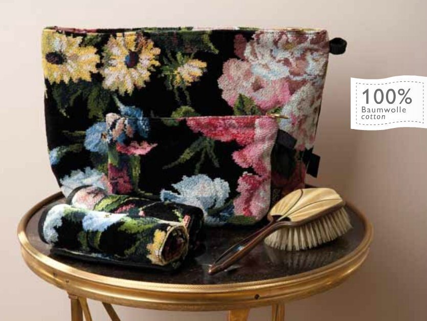 MIDNIGHT GARDEN(Полуночный сад )- идея дизайна принадлежит лондонскому House of Hackney. Роскошный, традиционно английский и немного старомодный цветочный узор — в воплощении Feiler выглядит модно и современно. Эта новая часть шенилловой коллекции Feiler расширяет портфолио британского дизайнерского дома, являясь примером по-настоящему успешного партнерства двух премиум-брендов.
