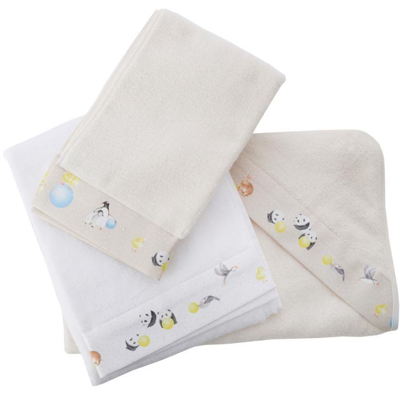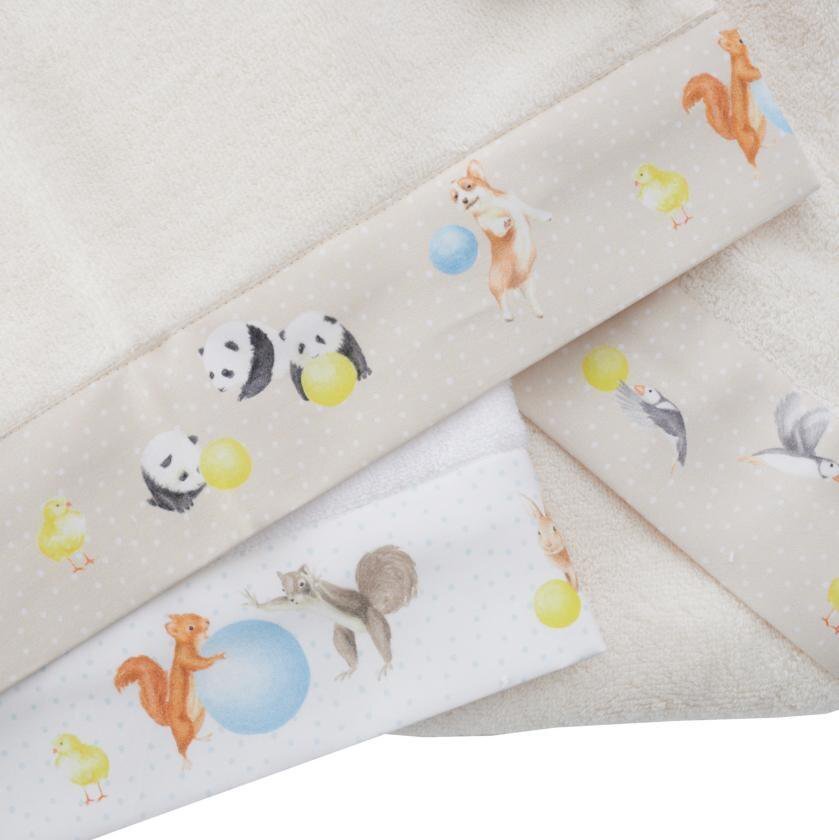 Пушистые и очень приятные махровые полотенца Dreampure с каймой из поплина "Mignon", на которой милые друзья животные собираются играть. Приветливые лица панд, белочки и пингвинов в смешных ситуациях, чтобы дети и взрослые наслаждались.