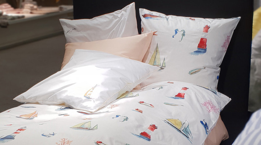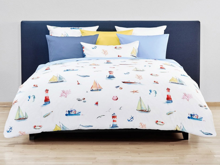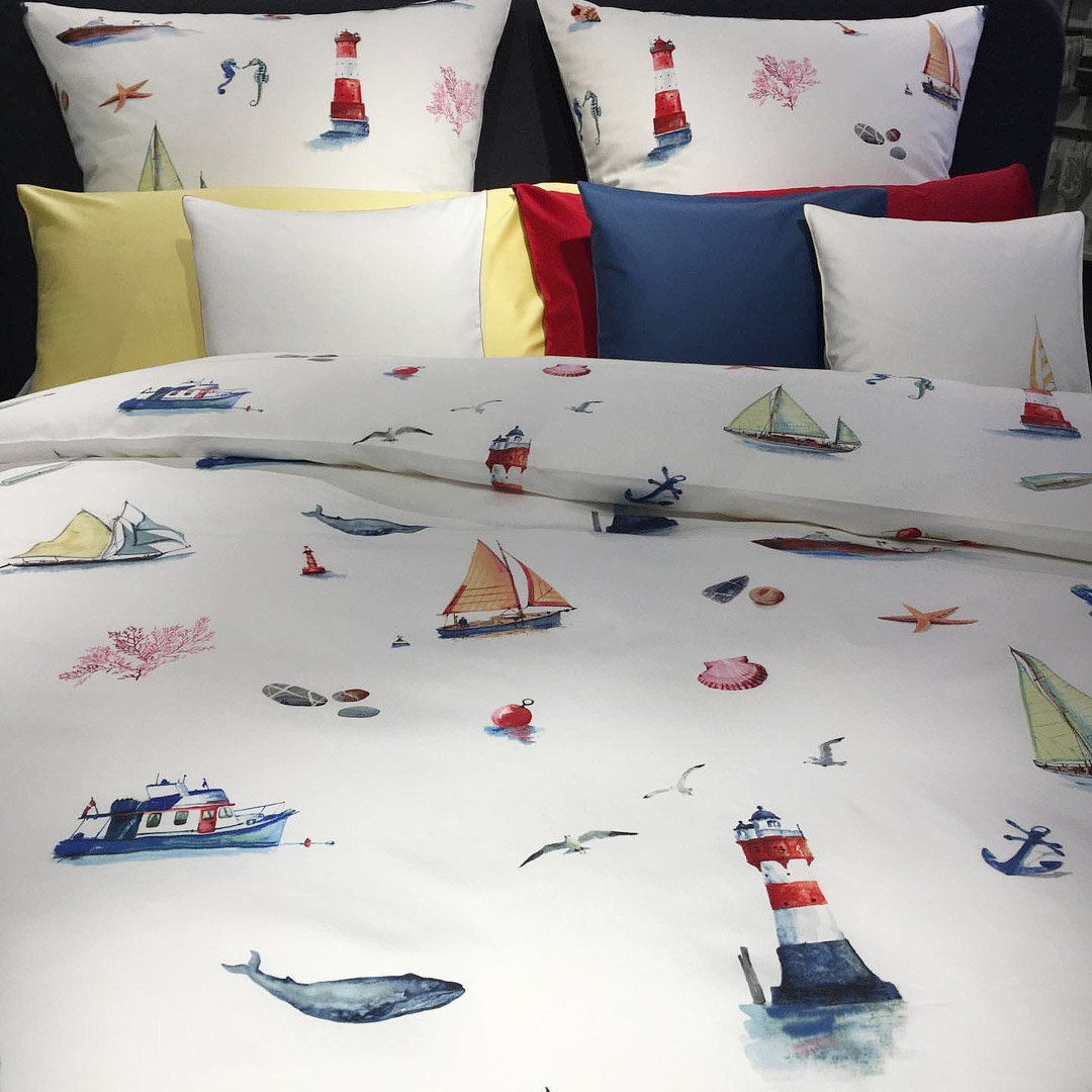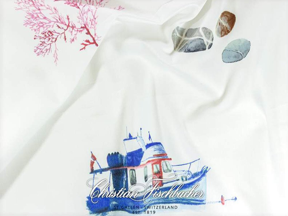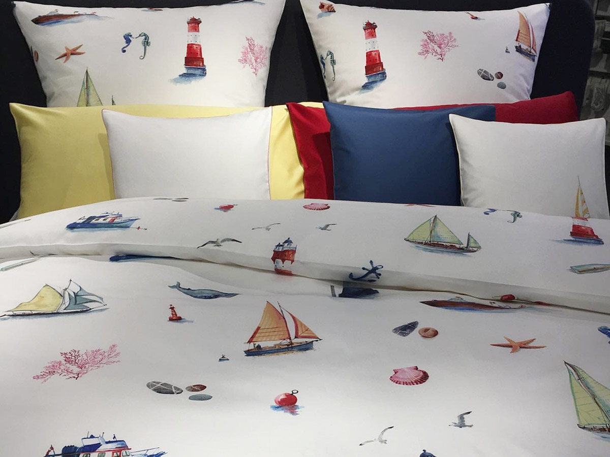 Интерьер - студия была вдохновлена давней традицией путешествий и парусного спорта семьи Фишбахер. Морские темы и водяные мотивы были нарисованы с большим вниманием к деталям. NAUTIK, напечатанный на швейцарской + хлопчатобумажной ткани, демонстрирует летний дизайн, вызывающий желание приключений и праздников.