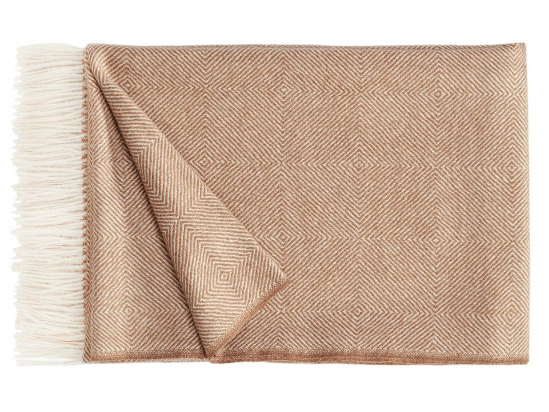 Цветовое сочетание рыжевато- коричневого и белой натуральной шерсти прекрасно впишется в ваш стильный интерьер. Классический, неподвластный времени и высочайшего качества - плед, в который можно влюбиться.