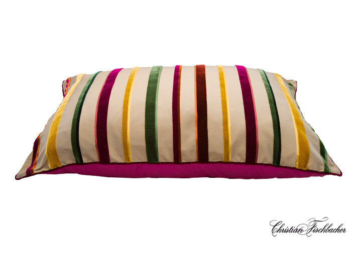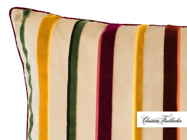 Нашитые по верх полосы разного габарита и цвета подчеркивают самый благородный характер шелка
