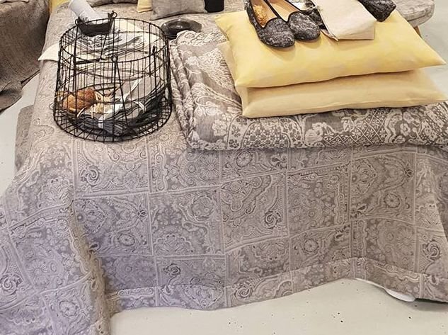 - В покрывале со слоем нетканого материала (флисом) ткань покрывала связана с подкладом через боковые швы. По запросу можно также обработать слой кровати с флисом (нетканым материалом) с помощью точечного прошива , в результате чего верхняя и нижняя ткани закрепляются в нескольких точках пледа с нетканым материалом. Отделка по краям покрывала сшита из ткани спереди и имеет ширину 7 см. По запросу передняя и задняя часть покрывала может быть изготовлена в другом дизайне и цветовой гамме.