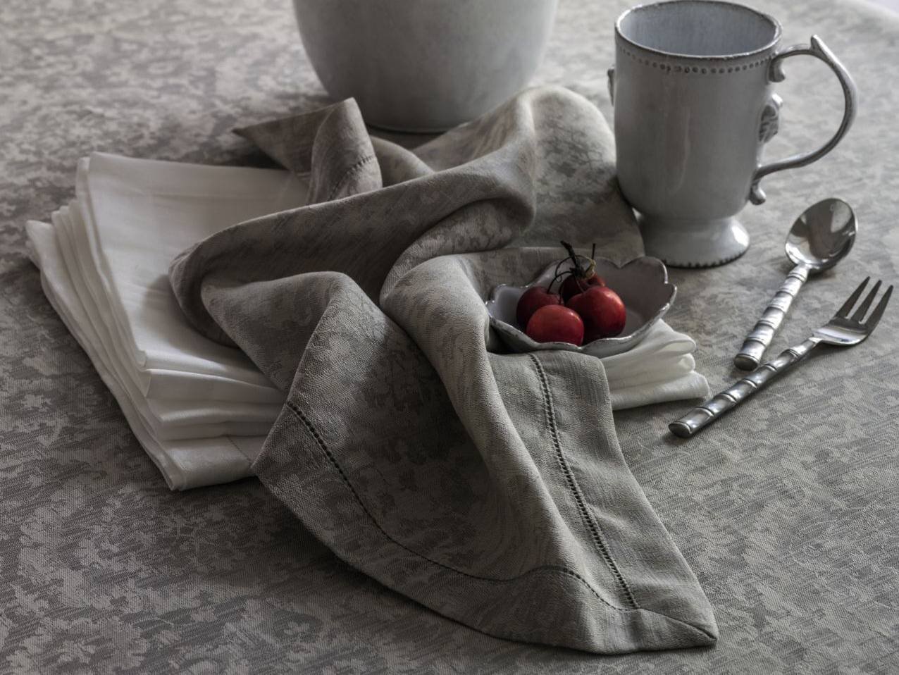 Легкий жаккардовый рисунок на слегка пестром фоне придает вашему столу празднично элегантный штрих.