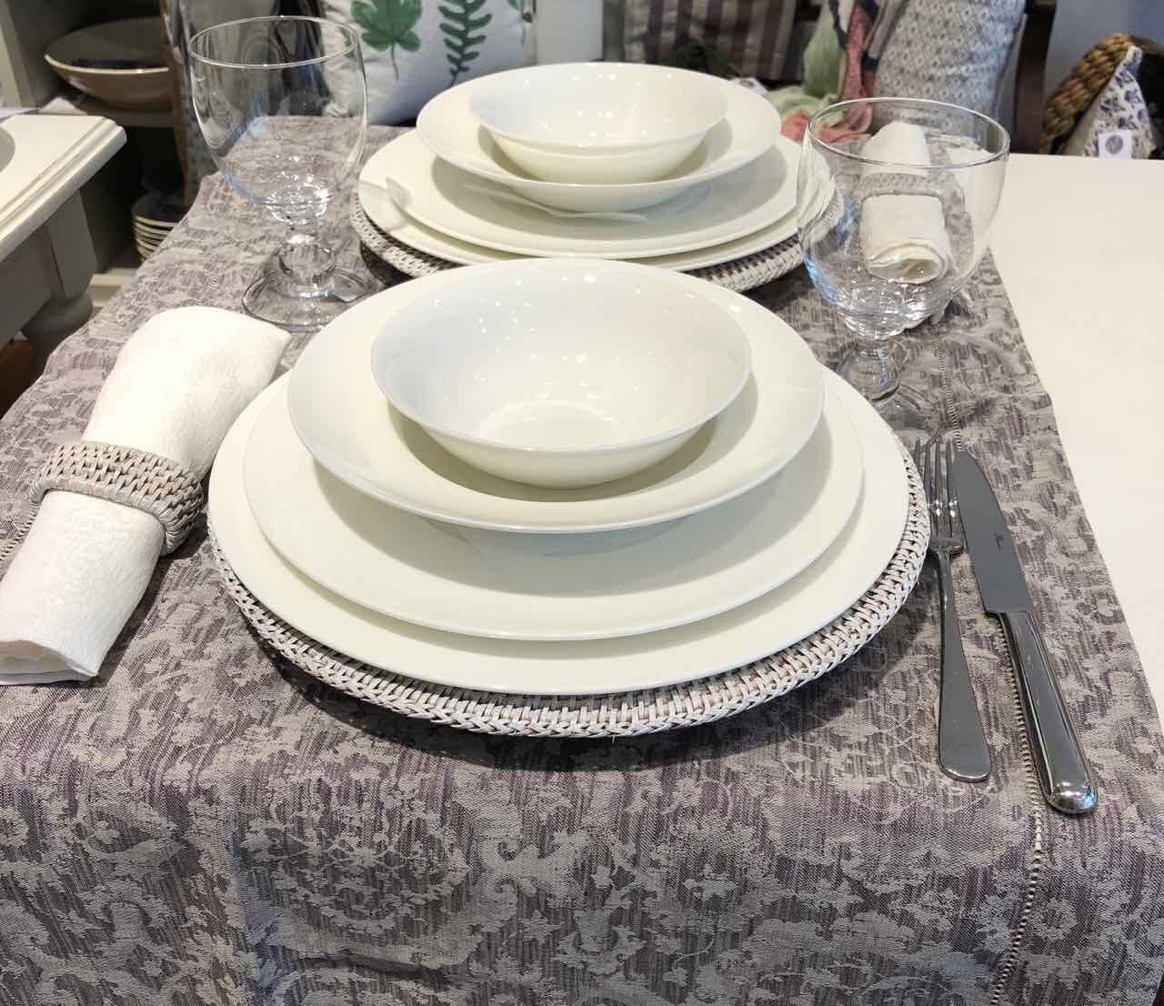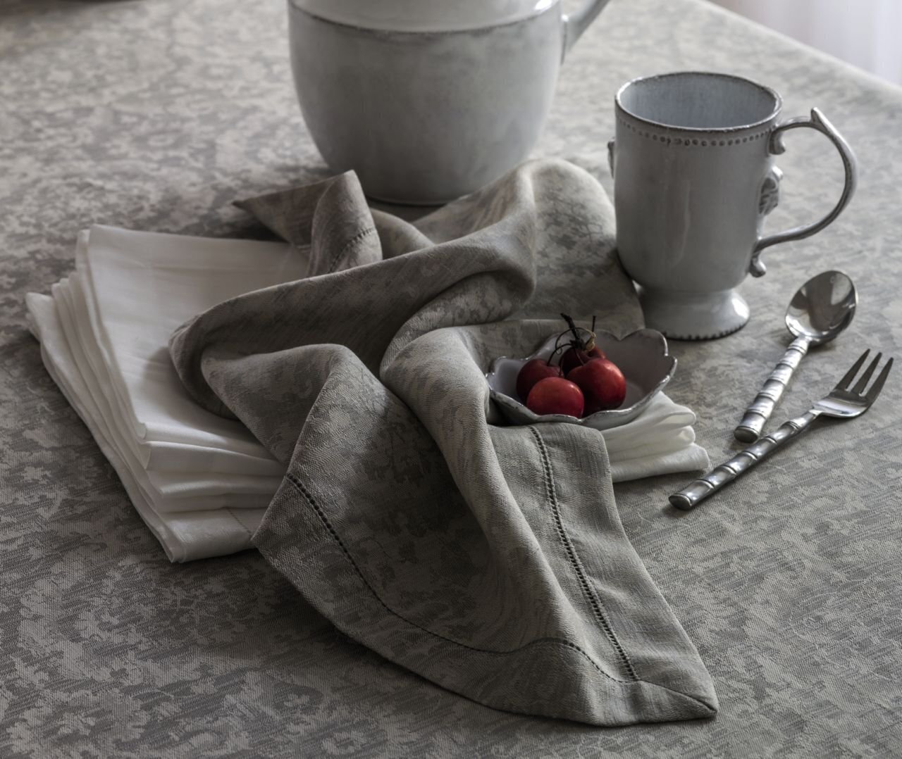 Легкий жаккардовый рисунок на слегка пестром фоне придает вашему столу празднично элегантный штрих.