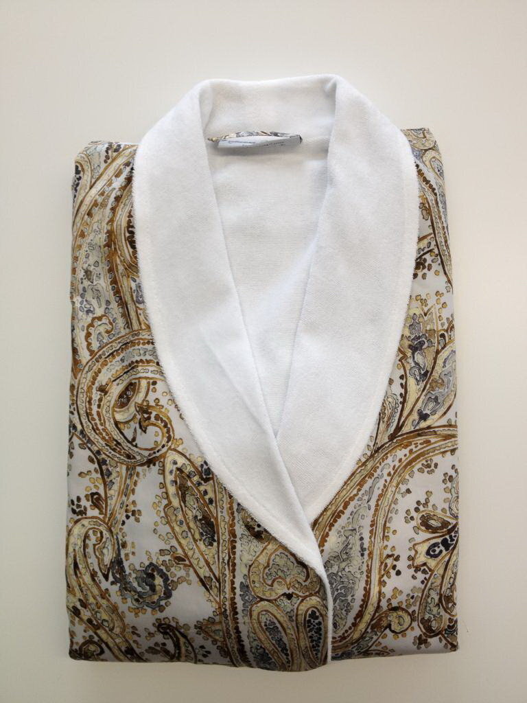 РОСКОШНЫЙ халат в сочетание сатина Christian Fischbacher с элегантным узором и лучшей махровой ткани из объемной нити, очень мягкой, легкой, приятной телу, прекрасно впитывающей влагу и хорошо пропускающей воздух, обеспечивая дыхание кожи.