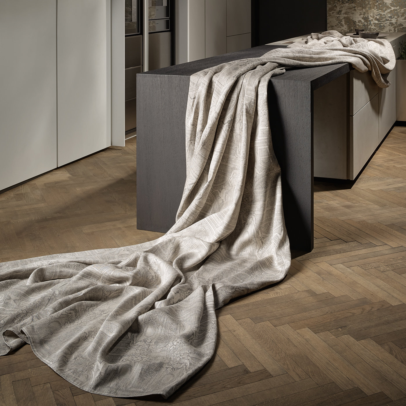 Жаккард из тонкого льняного полотна представляет собой орнаментальный узор, полученная сложным технологическим процессом производства. Ткань необычайно нежная, деликатная на ощупь. Элегантность в каждом стежке, это неповторимое произведение искусства, которое творит роскошный австрийский производитель Leitner Leinen на протяжении столетия. Натуральный изысканный лен – это необычайно редкая ткань, которую производят исключительно лучшие представители льняной индустрии всего мира. Особенности жаккардового плетения - игра оттенков, двухсторонняя композиция, которая сочетает в себе комбинации различных переплетений.