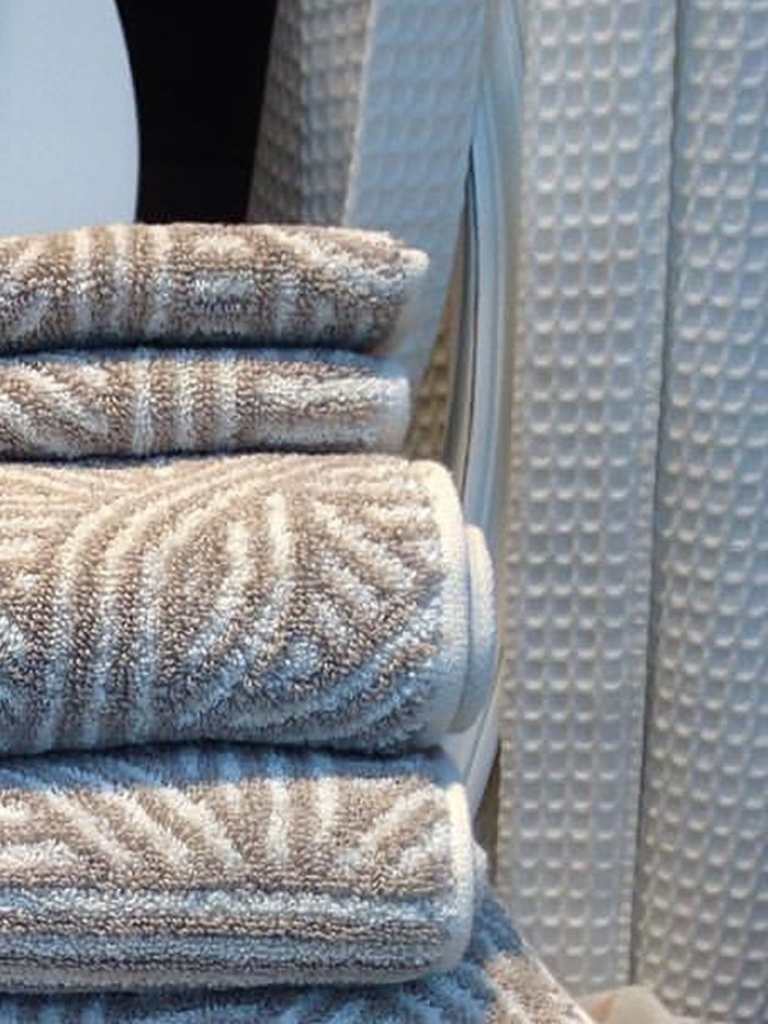 Пике Лейтнера сделан из чистого хлопка с сотканными сотами, которые создают четкую трехмерную структуру. Это создает воздушное ощущение на коже, которое образует очень приятное покрытие в жаркие дни и после спа-процедур.