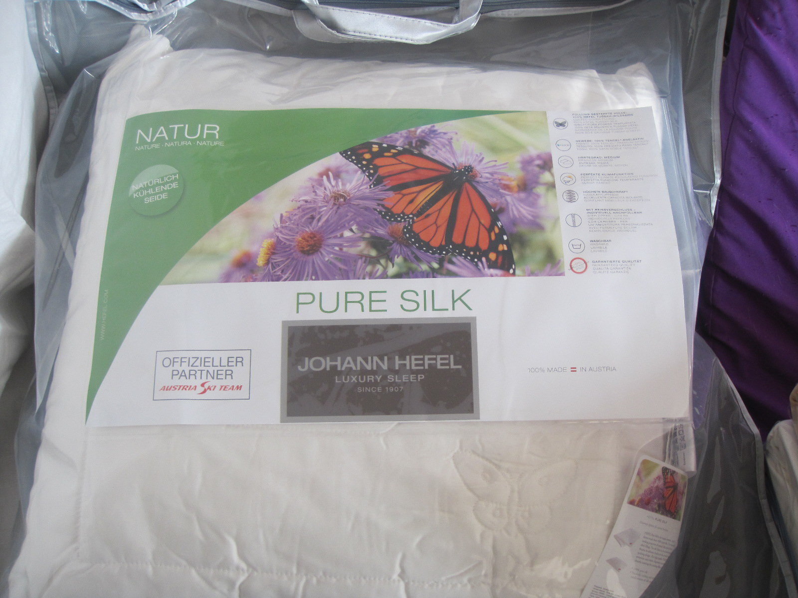 Шелк для коллекции HEFEL Silk от дикого дубового шелкопряда из Японии, Китая, Индии проходит очень тщательный и чрезвычайно дорогостоящей процесс очистки, чтобы полностью исключить раздражение кожи.