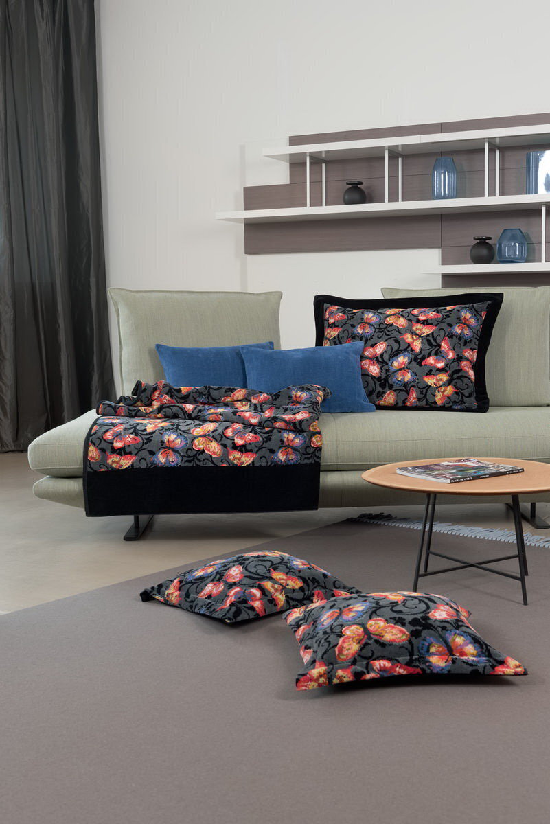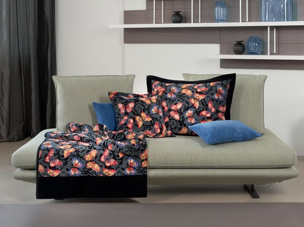 Шенилл легко узнать по характерной выпуклой нитке, которая контуром напоминает движение гусеницы (по-французски гусеница — chenille). Из-за ворсистой структуры ткани создается приятный эффект игры цвета.
