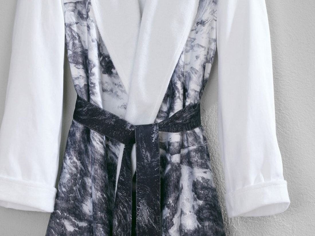 РОСКОШНЫЙ халат в сочетание сатина Christian Fischbacher с элегантным экзотическим узором и лучшей махровой ткани из объемной нити, очень мягкой, легкой, приятной телу, прекрасно впитывающей влагу и хорошо пропускающей воздух, обеспечивая дыхание кожи.
