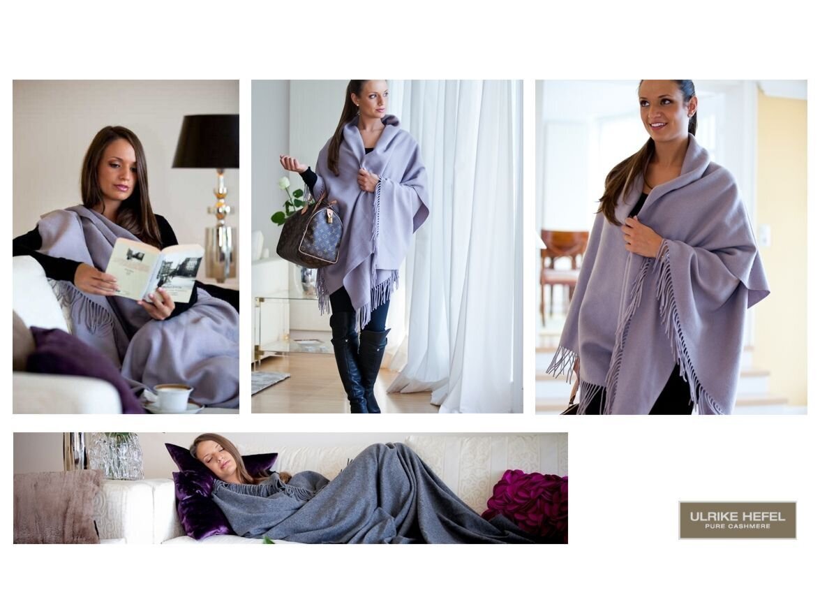 Используемые в качестве одеял, пончо или накидок, кашемировые пледы от Ульрики Хефель гарантируют истинное наслаждение как дома, так и в дороге.