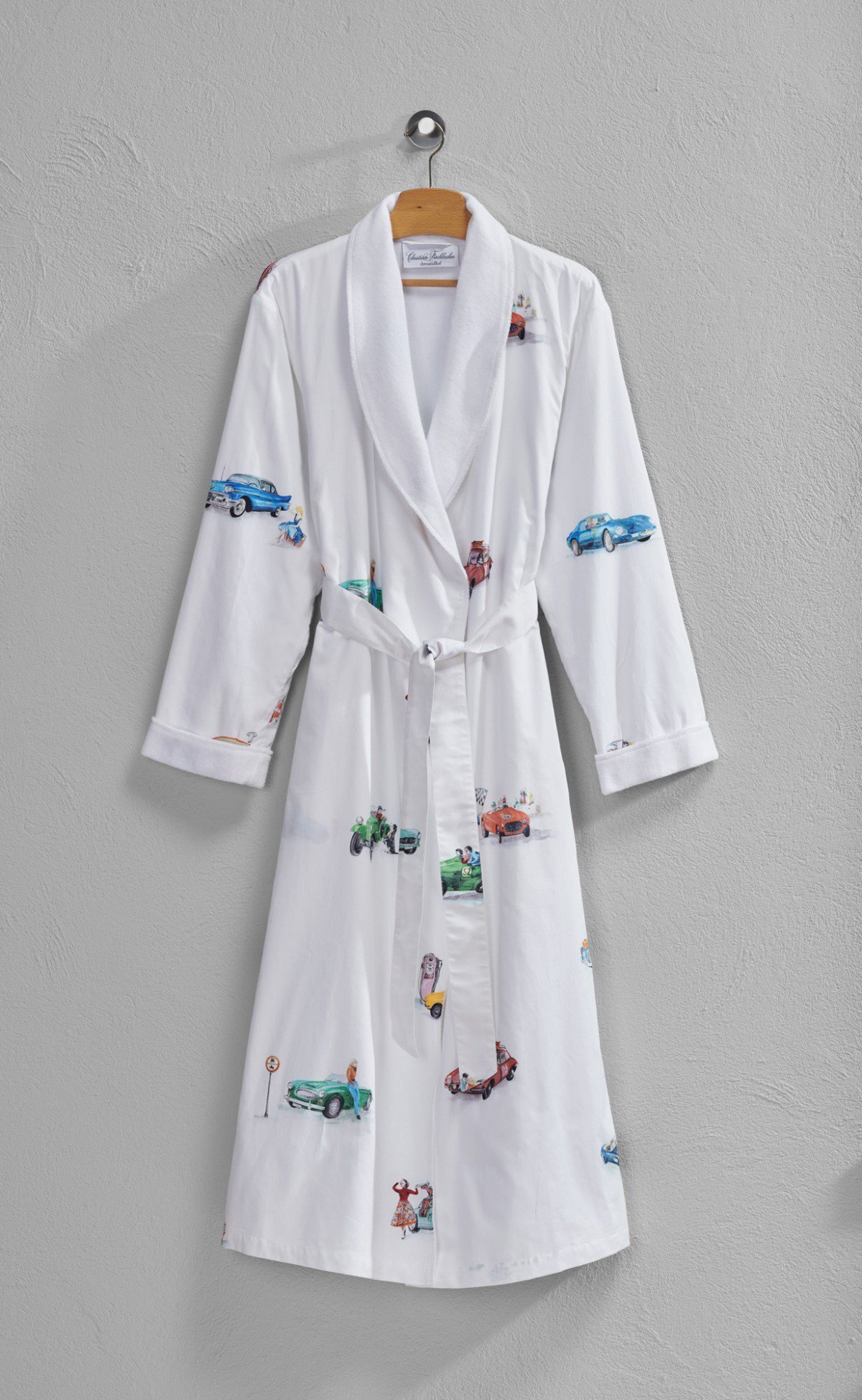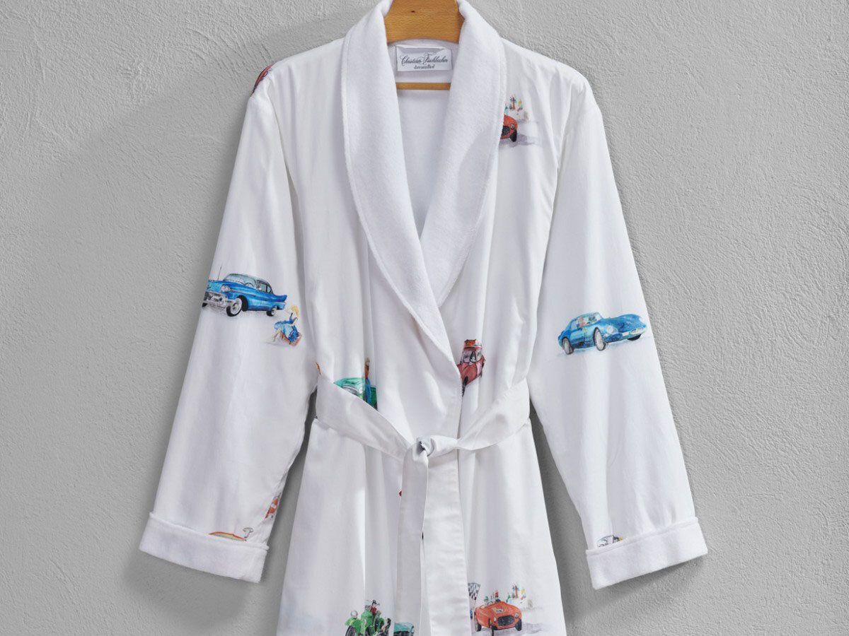 В дополнение к коллекции постельного белья и полотенец Christian Fischbacher представляет халат RALLYE . Внутри белая махровая ткань Dreamflor, халат имеет воротник шалькой и длину около 133 см. Изделия Dreamflor производятся в Швейцарии и соответствуют требованиям Oeko-Tex Standard 100.