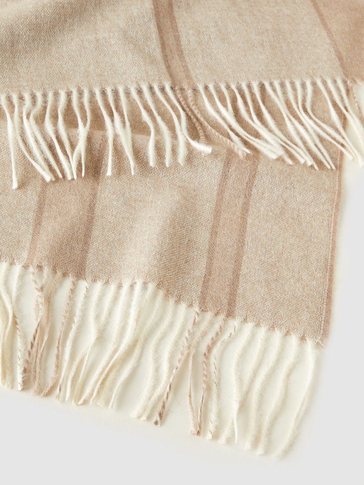 Диаметр волокна от 26 до 28 микрон делает этот плед приятно мягким и теплым. Бахрома на конце пледа придает игривый оттенок современному датскому дизайну. Плед не только самодостаточен и идеального размера, но также может сочетаться с соответствующей подушкой.