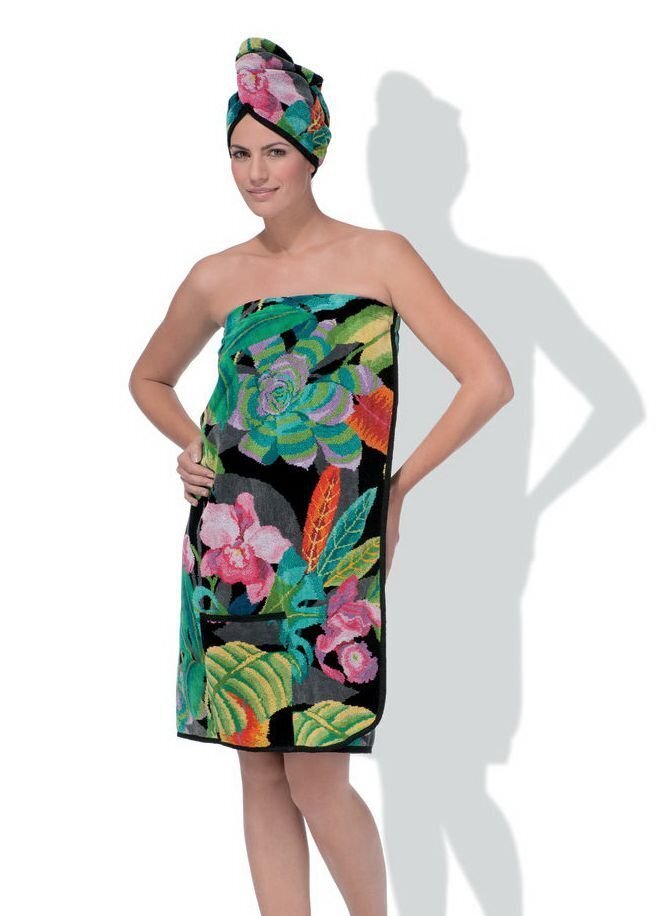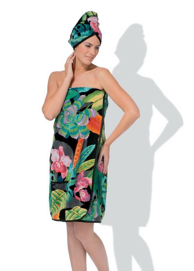 Для использования в сауне дополнить тюрбан можно полотенцем 150х100 см