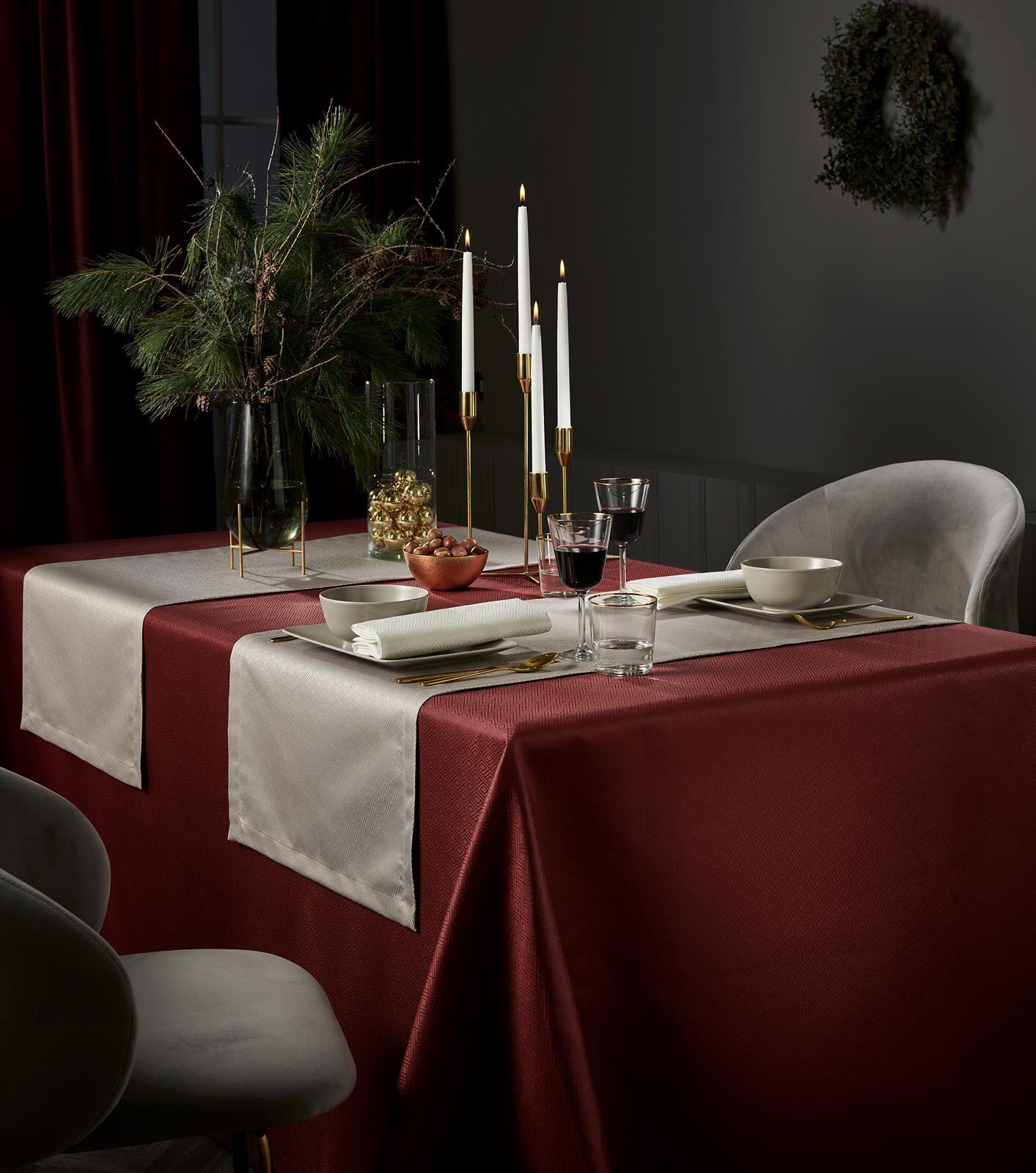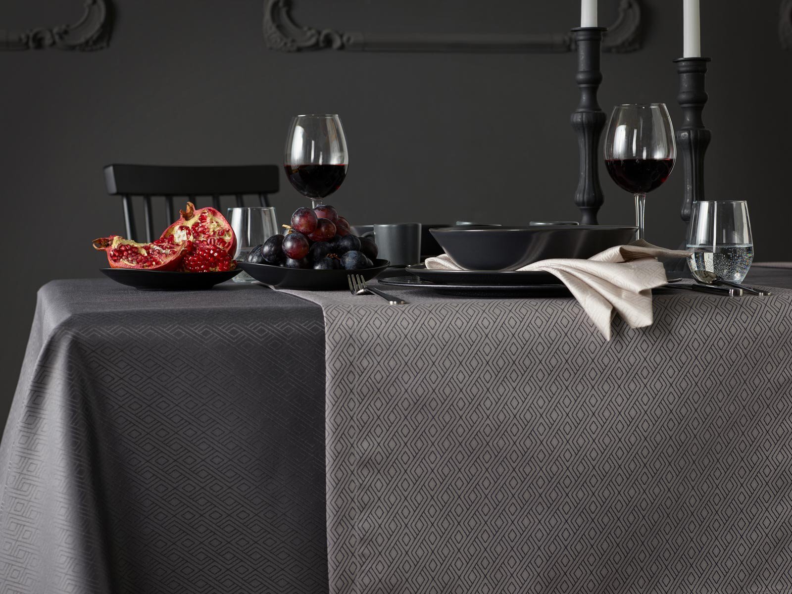 - Скатерть с грязеотталкивающим эффектом. Ткань с защитой от пятен имеет специальную обработку, что уменьшает проникновение жидкостей или других загрязняющих веществ и облегчает удаление грязи. Тем самым эта скатерть идеально подходит для больших вечеринок и семейных торжеств