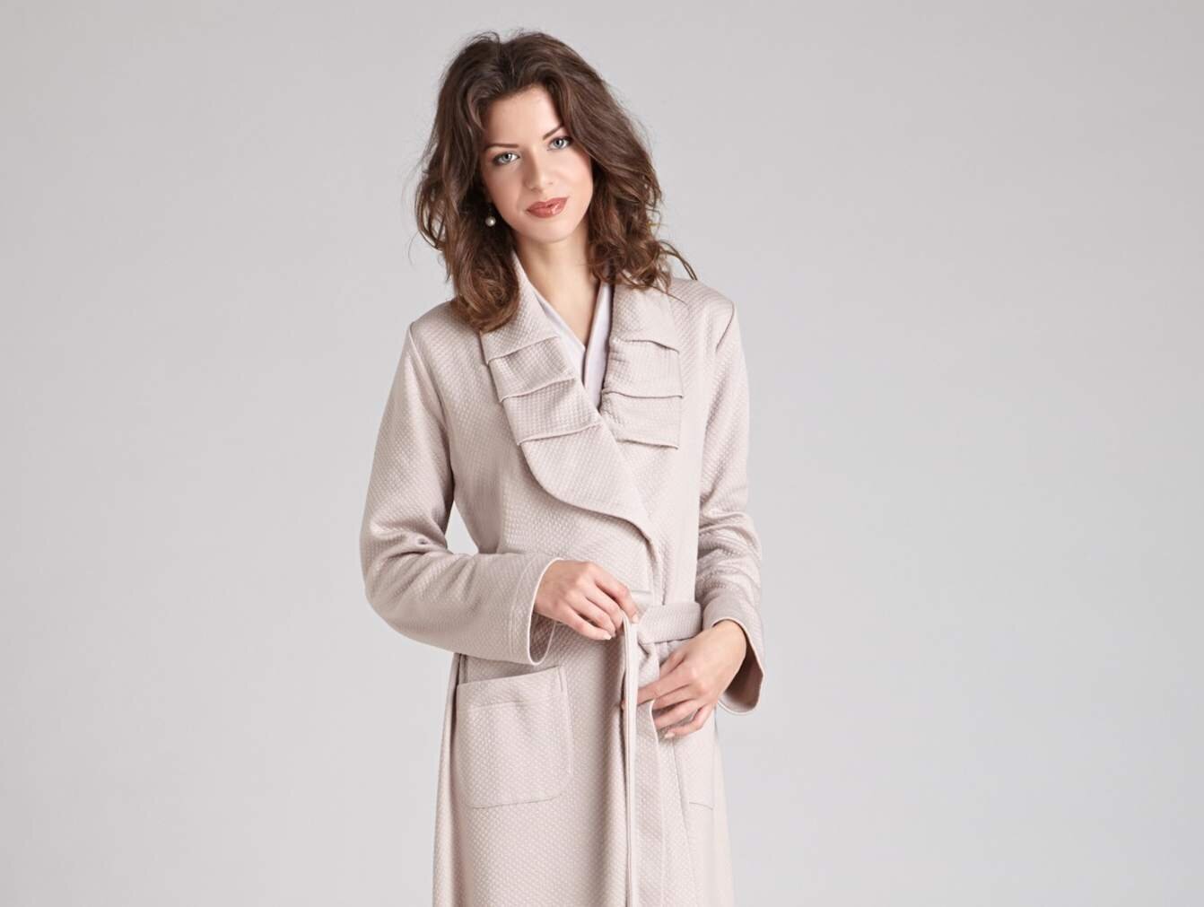 Халат из нежного объемного трикотажа с изящным воротом от бельгийской компании PLUTO