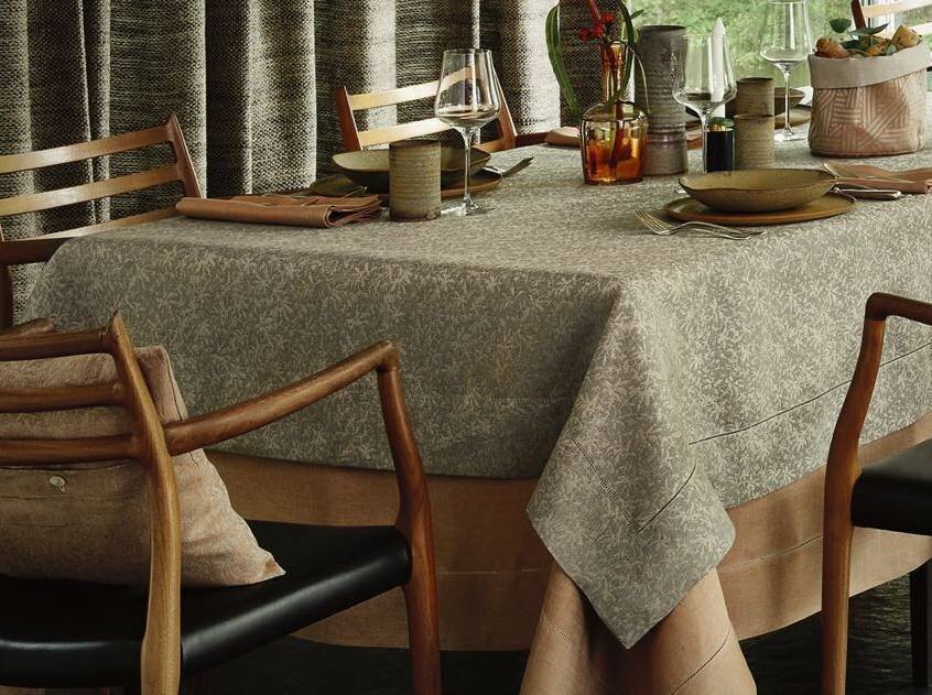 Этот дизайн из 100% льна, пряжи высшего качества с тончайшими нюансами, доступен в виде салфеток под тарелки, дорожек для стола, скатертей, которые привнесут шарм вашей кухне и столовой.
