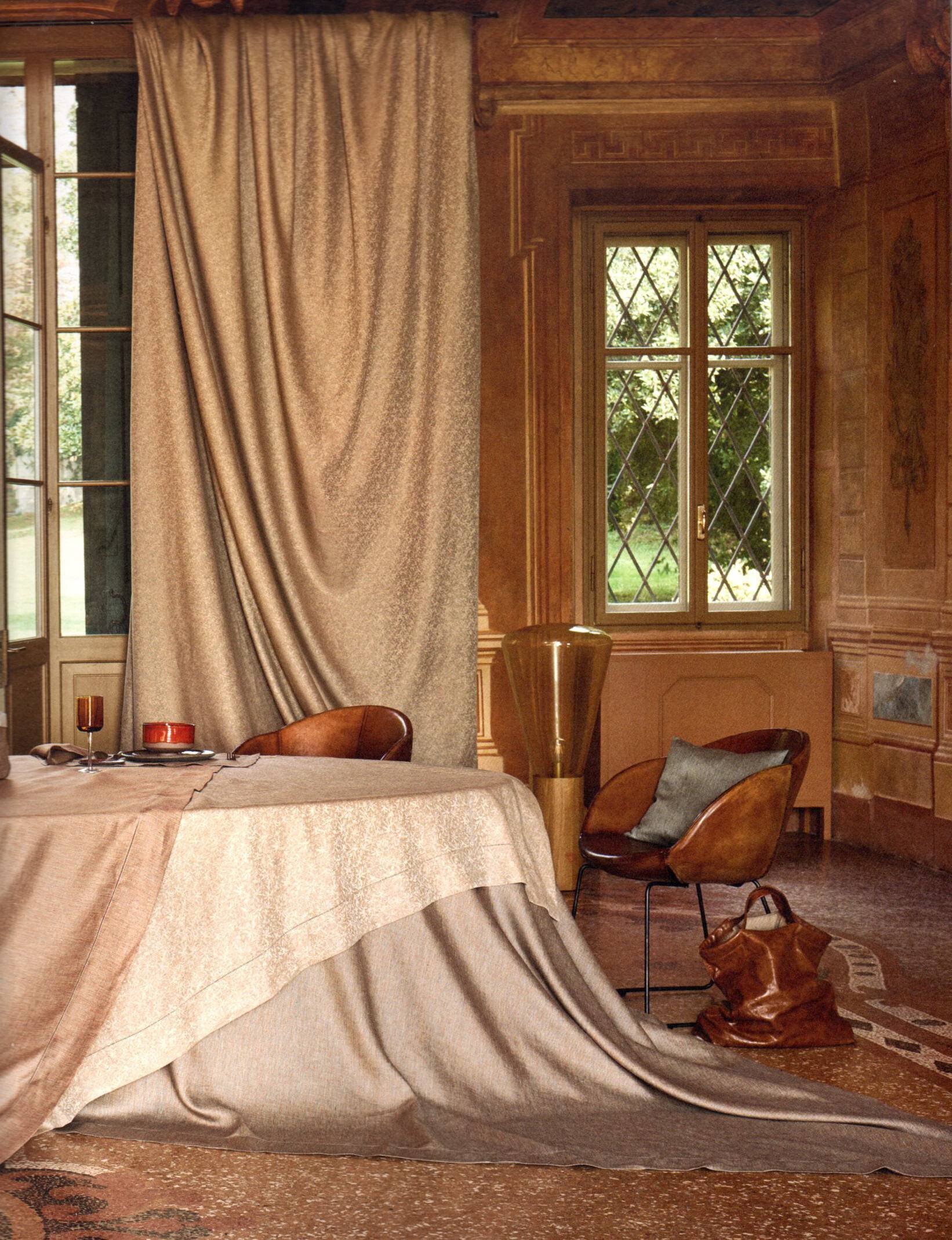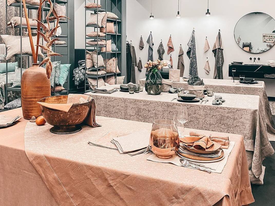 - коллекция включает: льняные салфетки 47х47 см, сеты под тарелку 38/50, 44/56 см, дорожки для стола, скатерти и постельное белье, покрывала