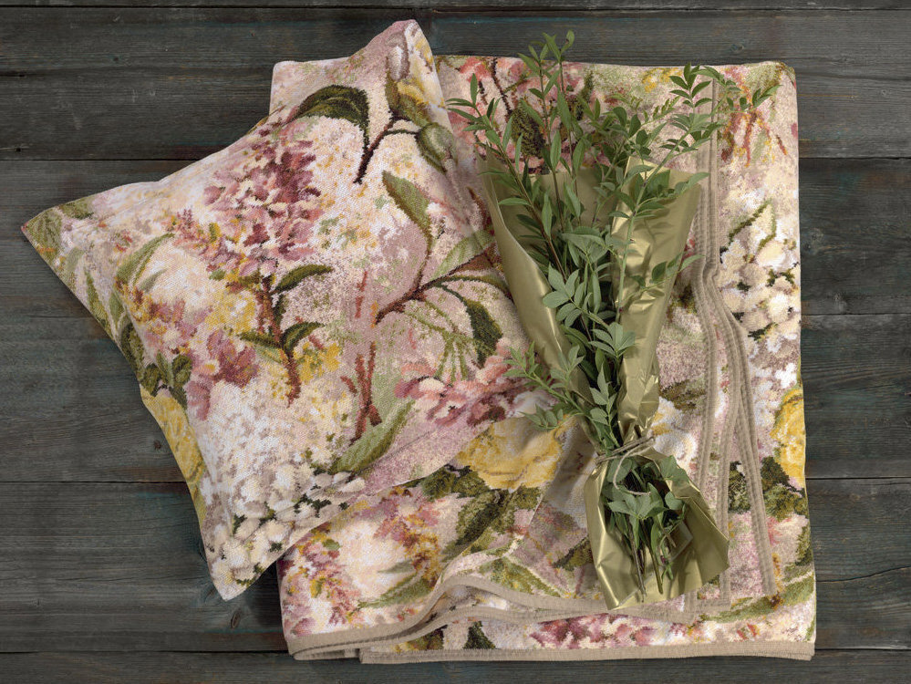 Шенилл -это уникальная плюшевая ткань из чистого хлопка. Специальная техника плетения допускает двусторонний рисунок. Его легко узнать по характерной выпуклой нитке, которая контуром напоминает движение гусеницы (по-французски гусеница — chenille). Из-за ворсистой структуры ткани создается приятный эффект игры цвета.
