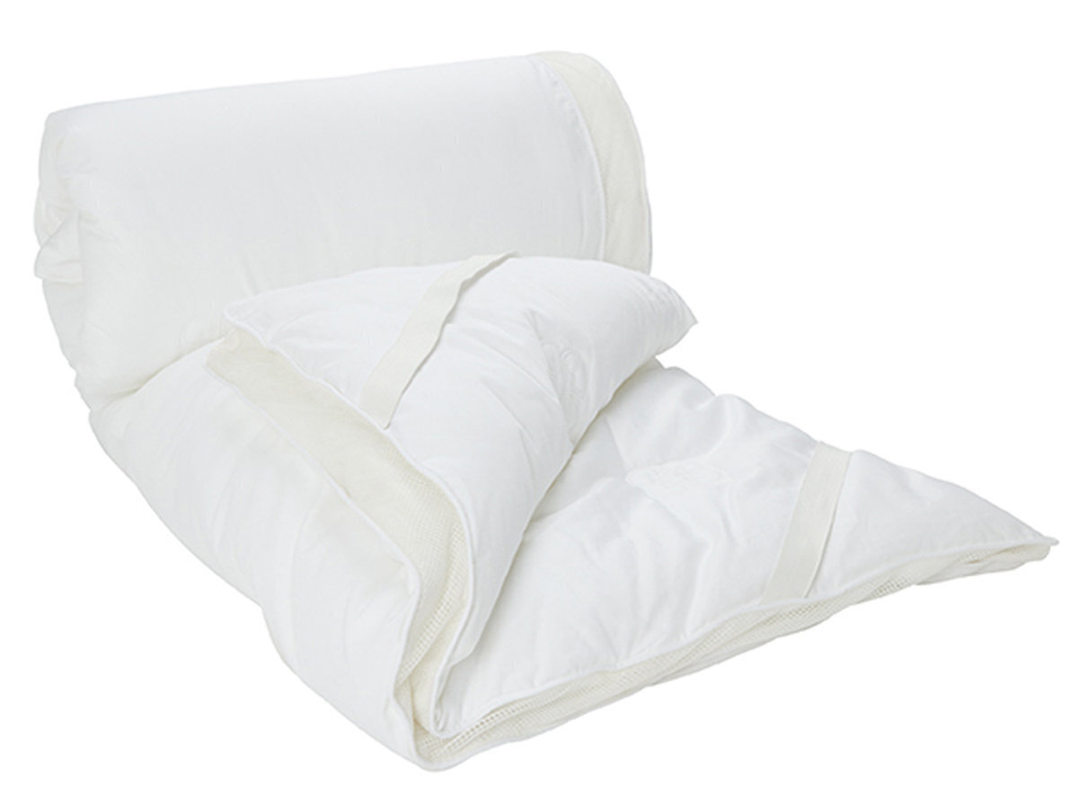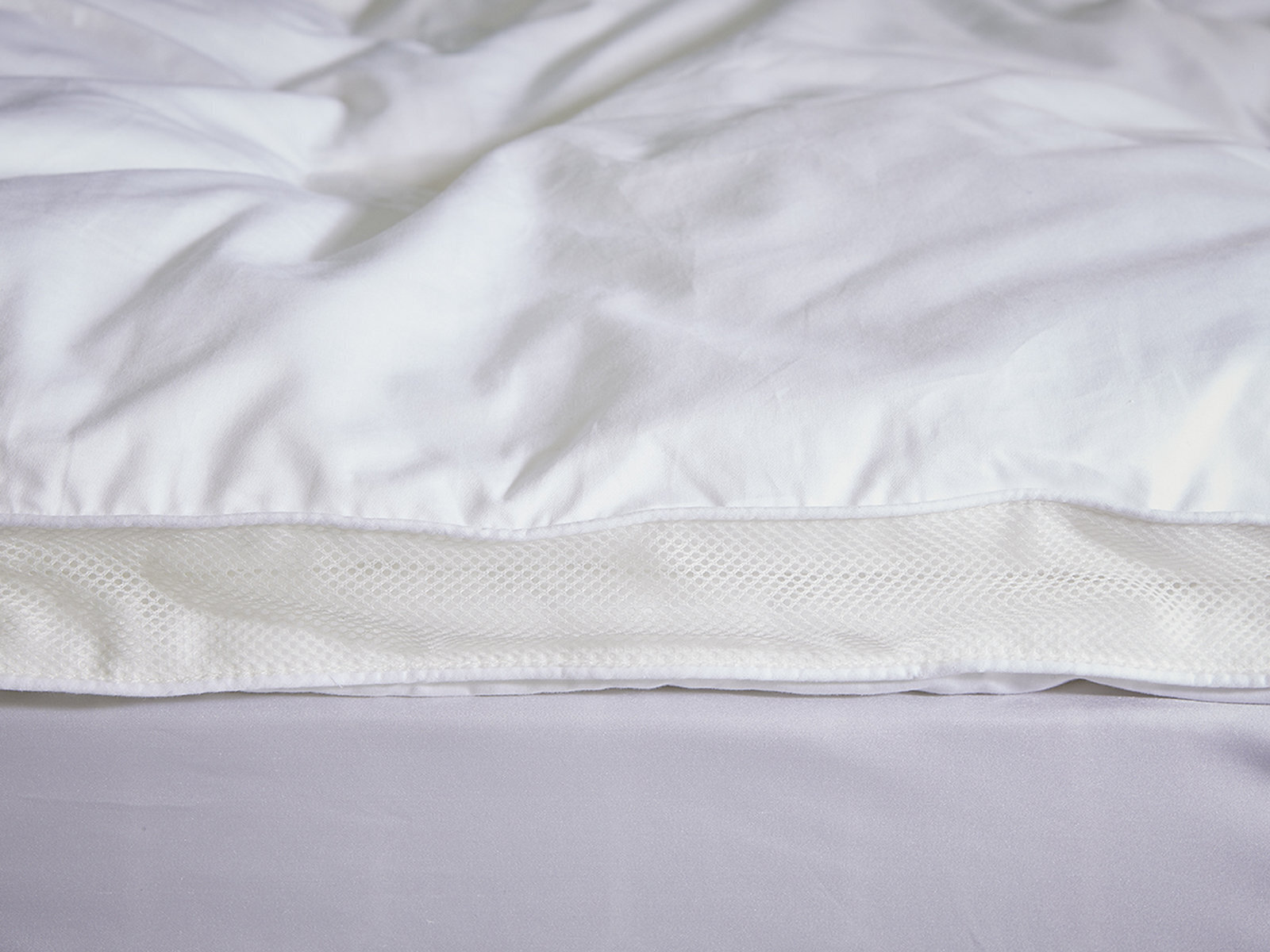 Чехол изделия выполнен из сатина 100% хлопка плотностью в 300 переплетений, который отталкивает пыль. Пылевой клещ не живет в шелке. По перитетру торцевой части есть сетчатая вставка.