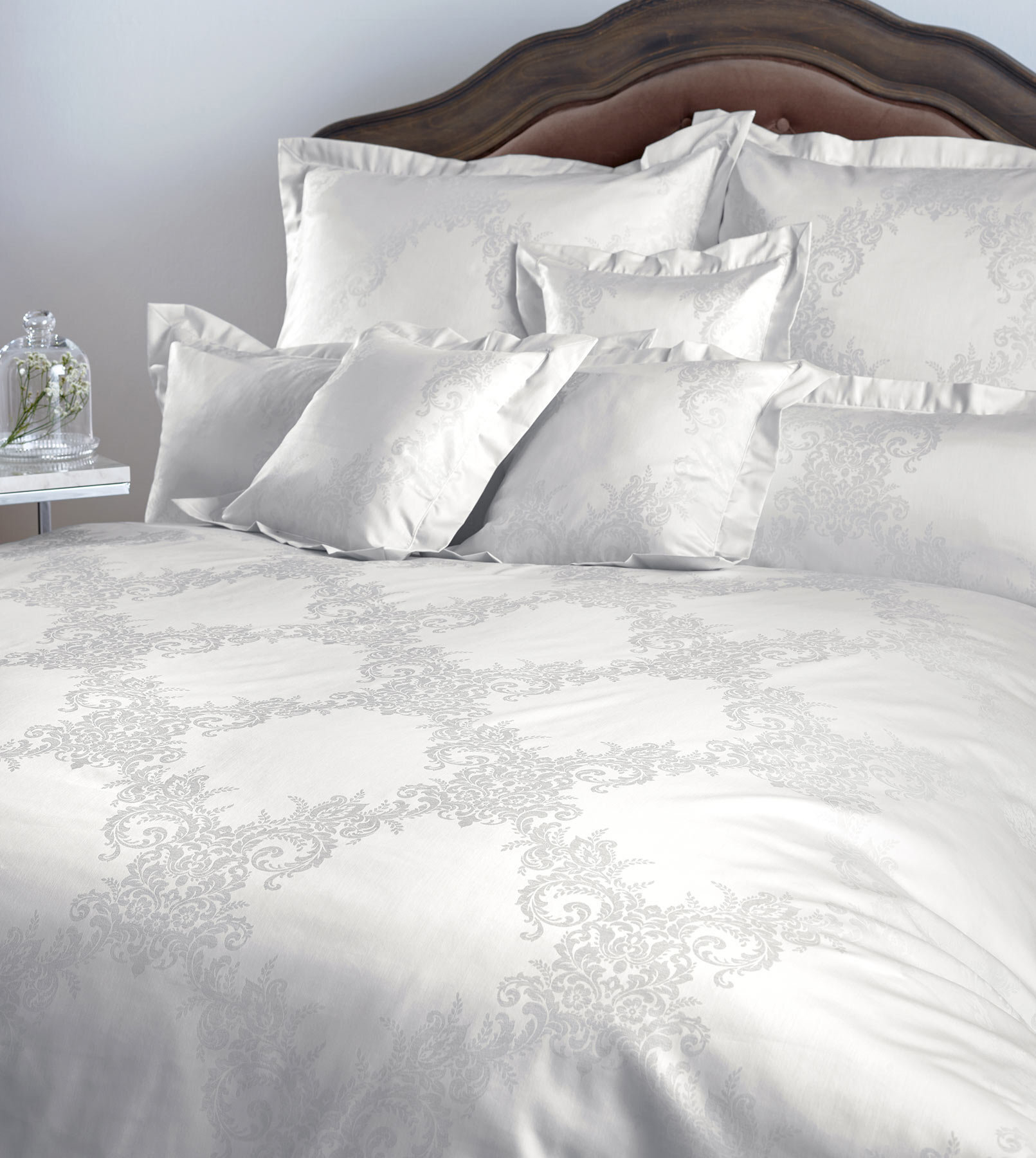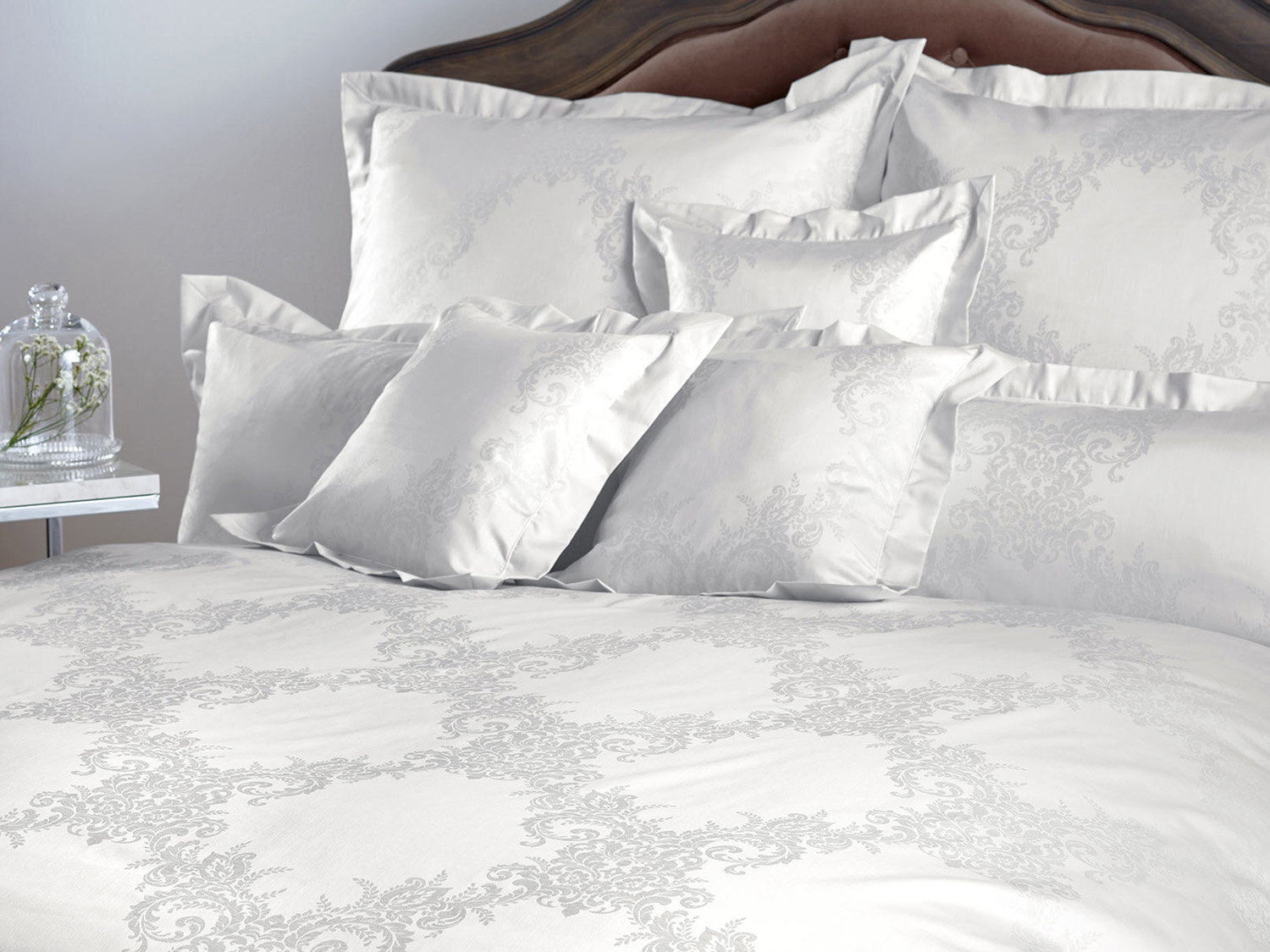 Этот дизайн воплощает в себе все, что подразумевается под парчовым дамасским постельным бельем. Высококачественная ткань, тонкие цветовые градиенты и филигранный дизайн усиков с большим вниманием к деталям.