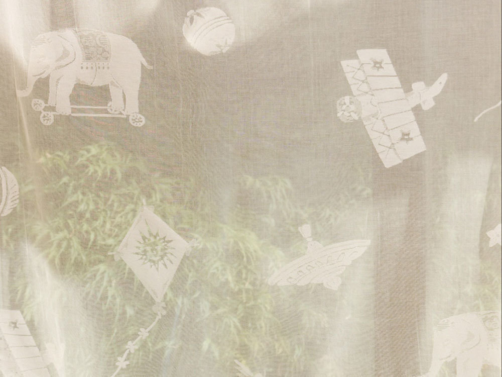 Тюль с детскими дизайном «Волчки» (Spinning Tops) с нежным рисунком из Мадраса предлагается только на отрез.